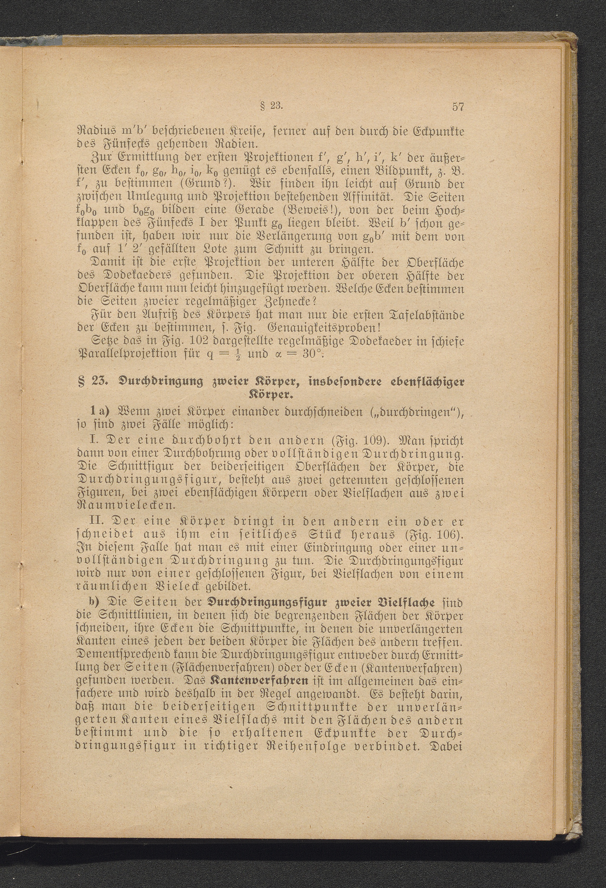 § 23. Durchdringung zweier Körper, insbesondere ebenflächiger Körper.
