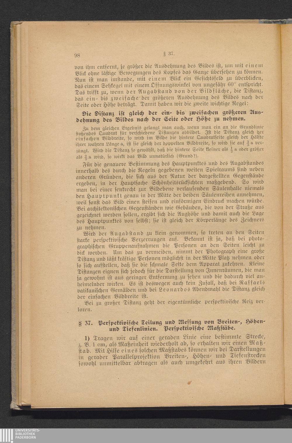 § 37. Perspektivische Teilung und Messung von Breiten-, Höhen- und Tiefenlinien.[...]