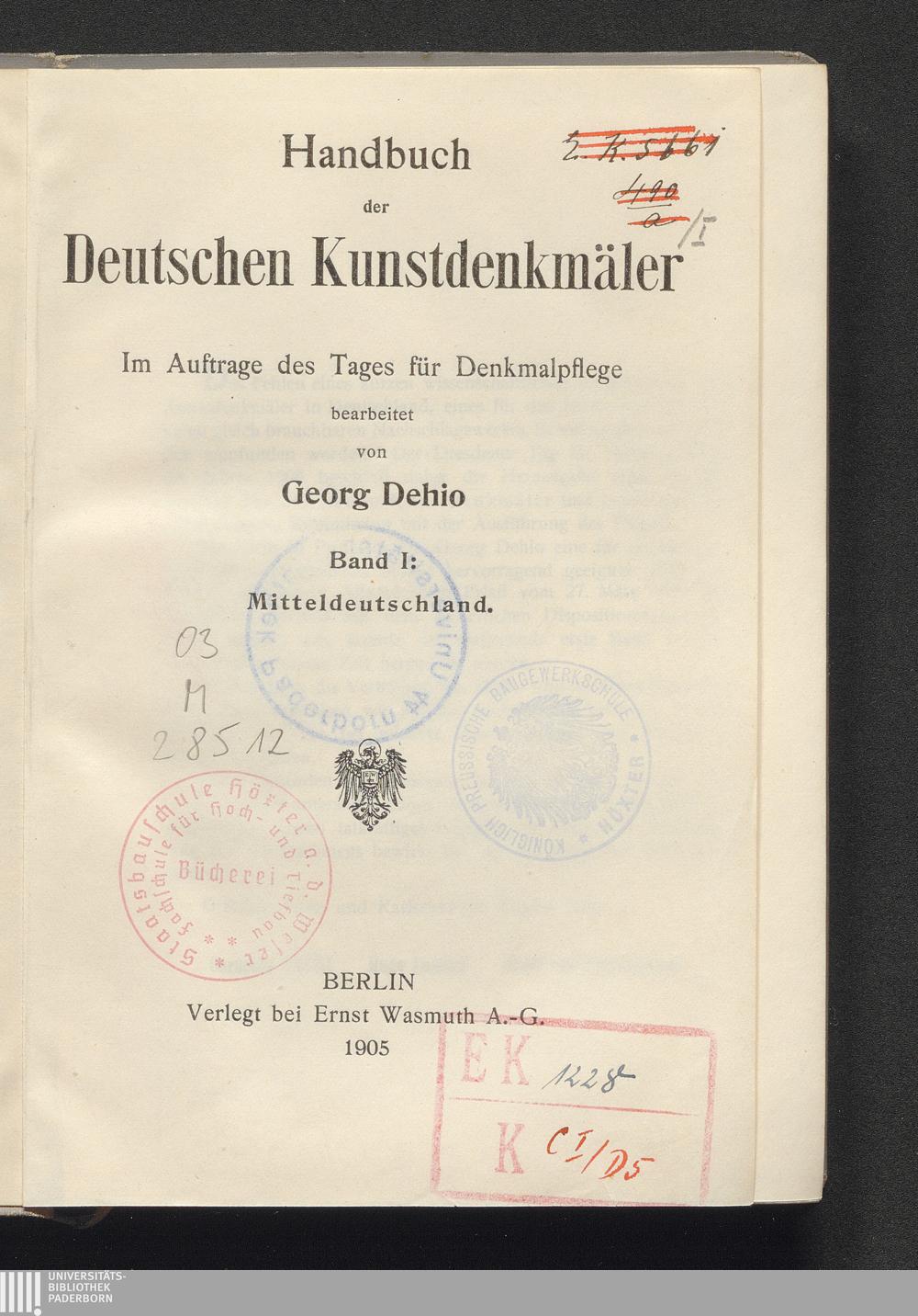 1 (1905) Handbuch der deutschen Kunstdenkmäler / Georg Dehio. 1 / Mitteldeutschland / Georg Dehio
