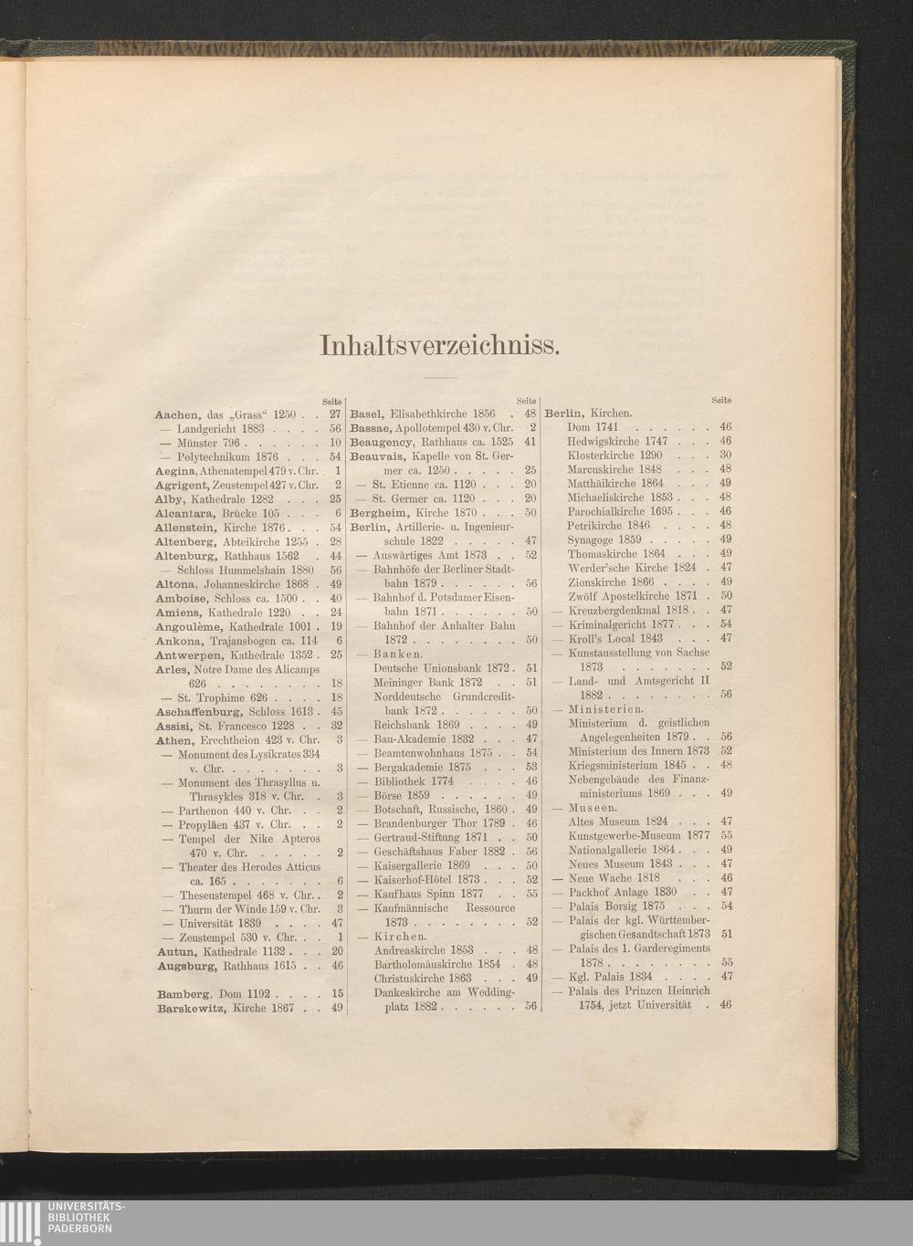 Inhaltsverzeichniss.
