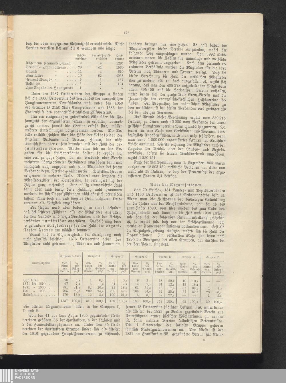 Statistik der Frauenorganisationen im Deutschen Reiche / bearb. im Kaiserlichen Statistischen Amte Abt. für Arbeiterstatistik