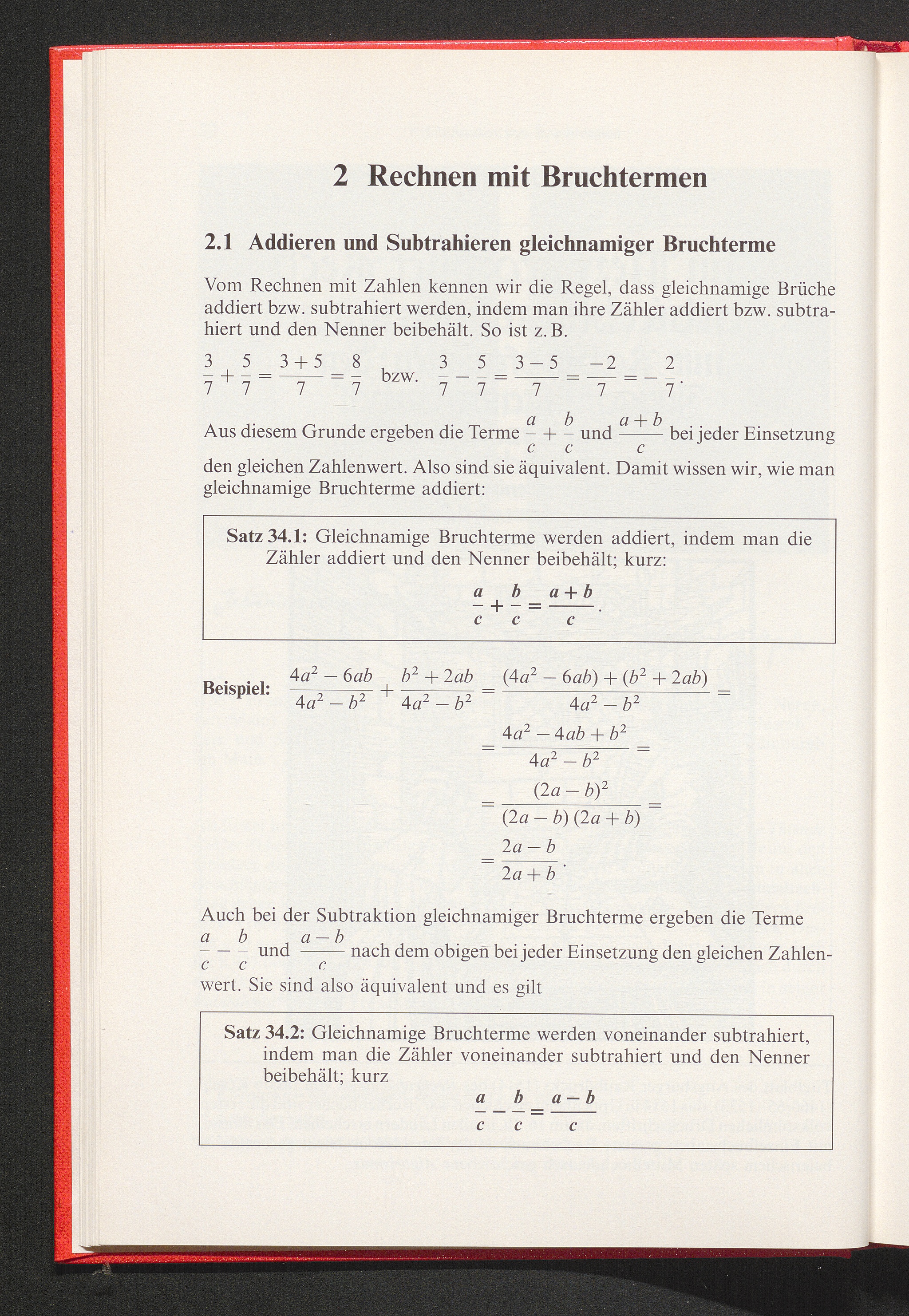 2.1 Addieren und Subtrahieren gleichnamiger Bruchterme
