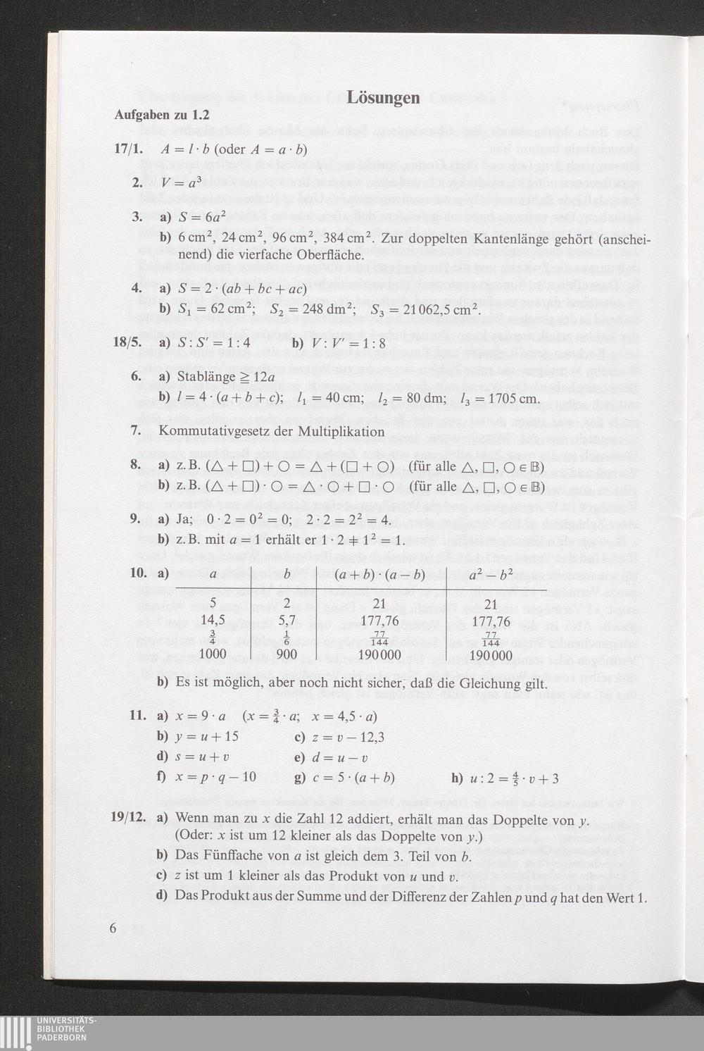 7,loes (2000) Algebra / Friedrich Barth .... 7, Lösungen.