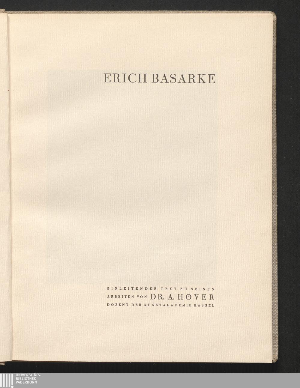 Erich Basarke / einleitender Text zu seinen Arbeiten von A. Höver