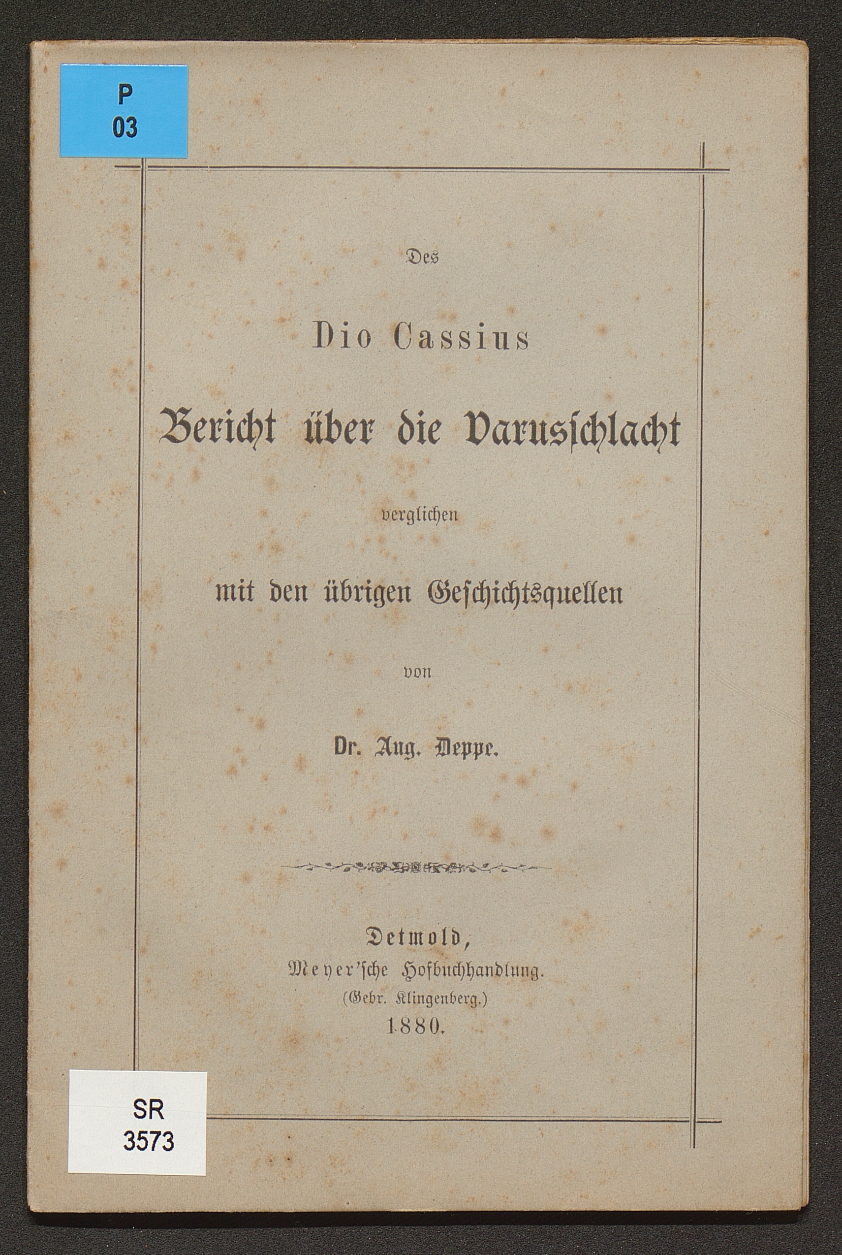 Des Dio Cassius Bericht über die Varusschlacht, verglichen mit den übrigen Geschichtsquellen / von Aug. Deppe