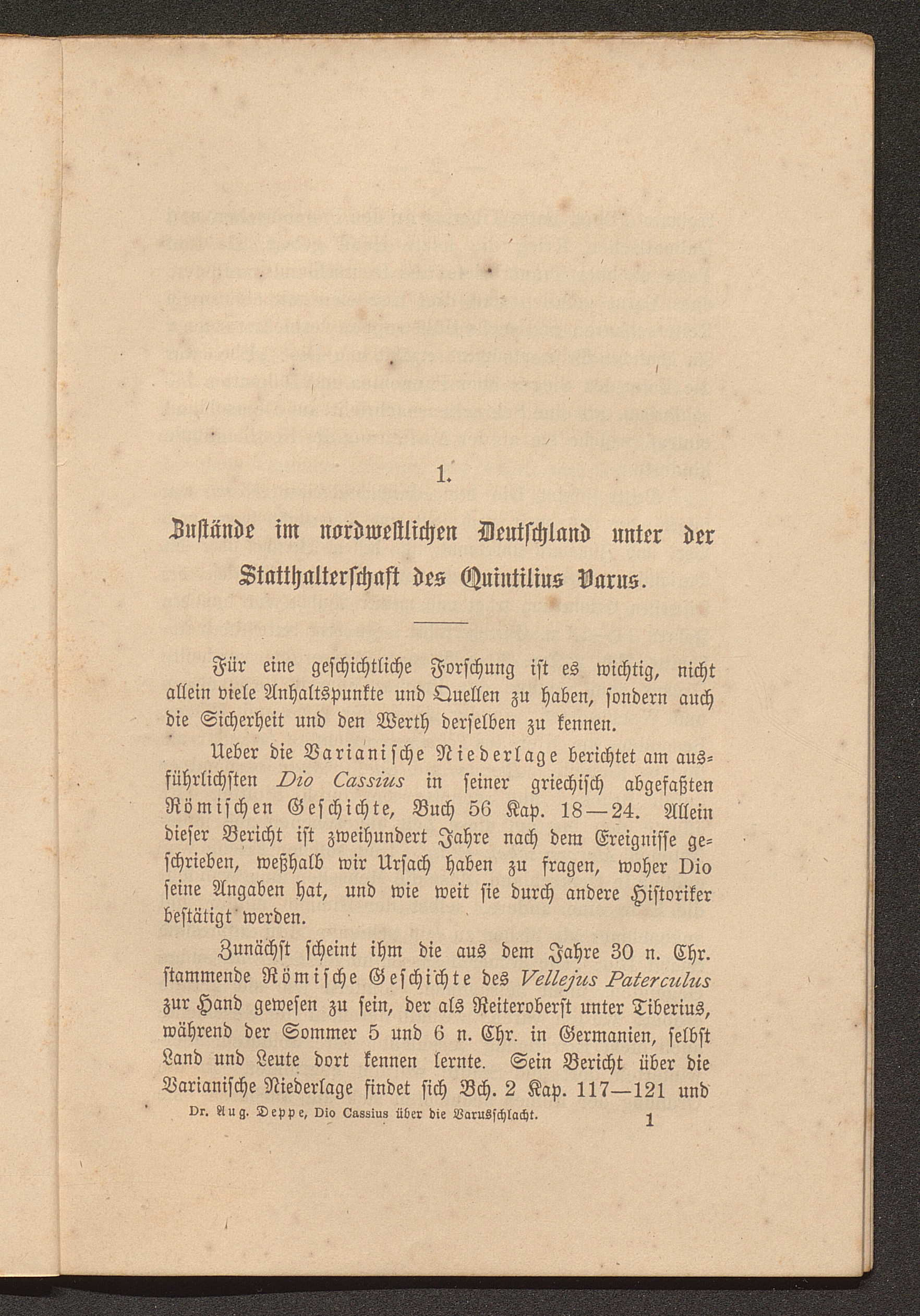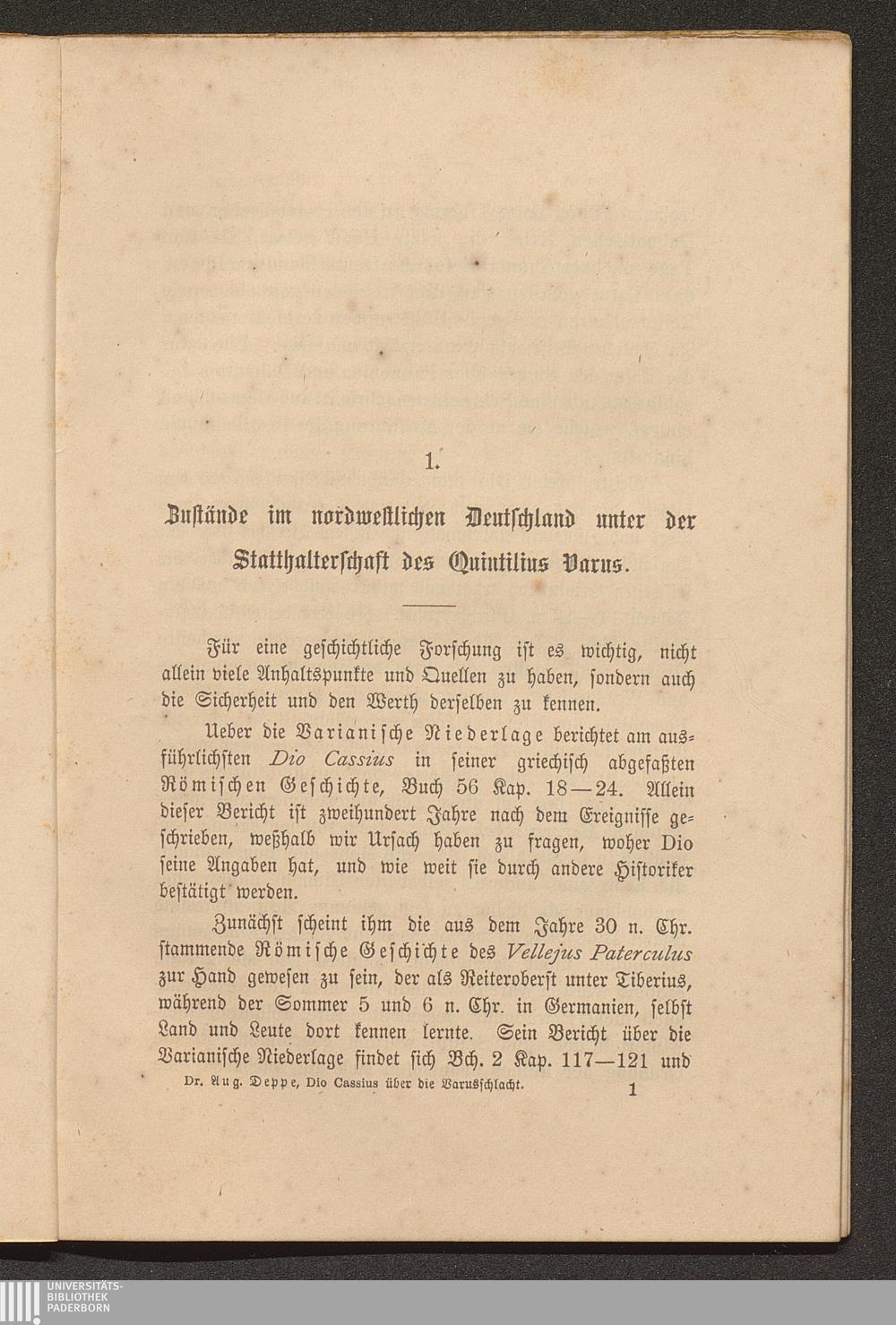 Des Dio Cassius Bericht über die Varusschlacht, verglichen mit den übrigen Geschichtsquellen / von Aug. Deppe