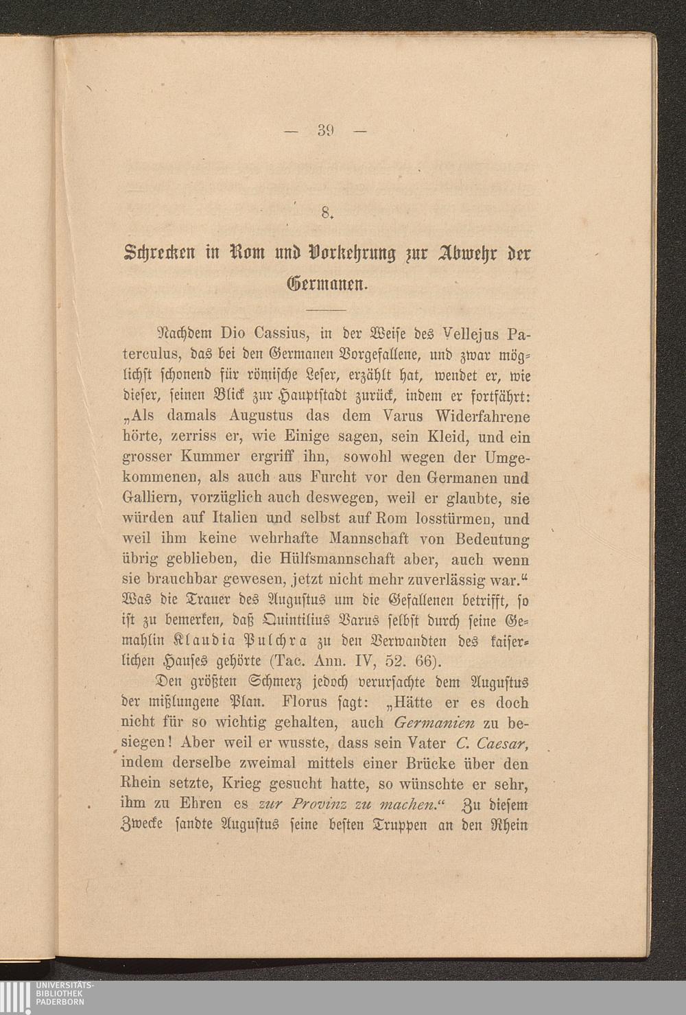 Des Dio Cassius Bericht über die Varusschlacht, verglichen mit den übrigen Geschichtsquellen / von Aug. Deppe