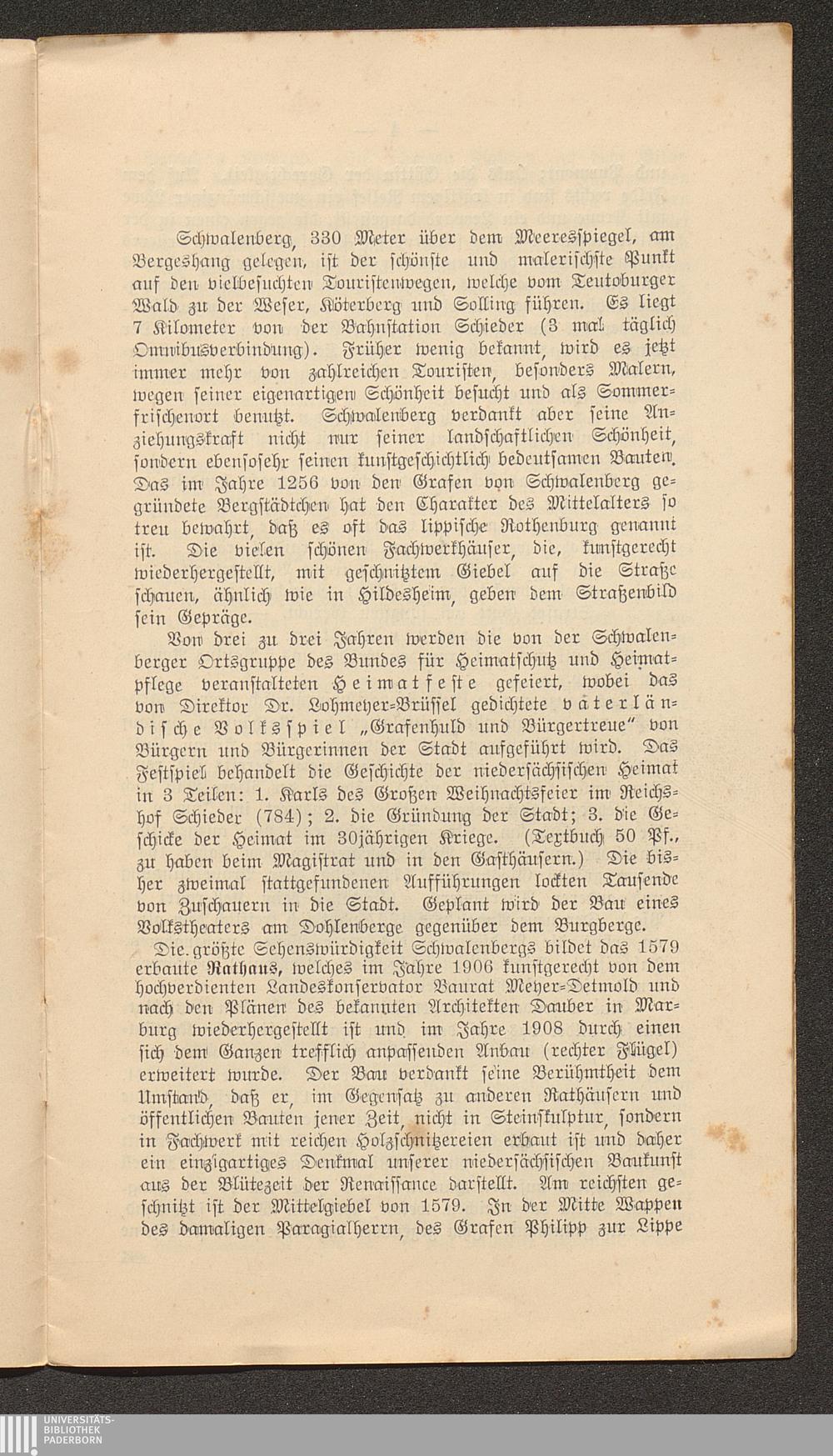 Führer von Schwalenberg und Umgegend / hrsg. von der Ortsgruppe Schwalenberg des Bundes für Heimatschutz und Heimatpflege
