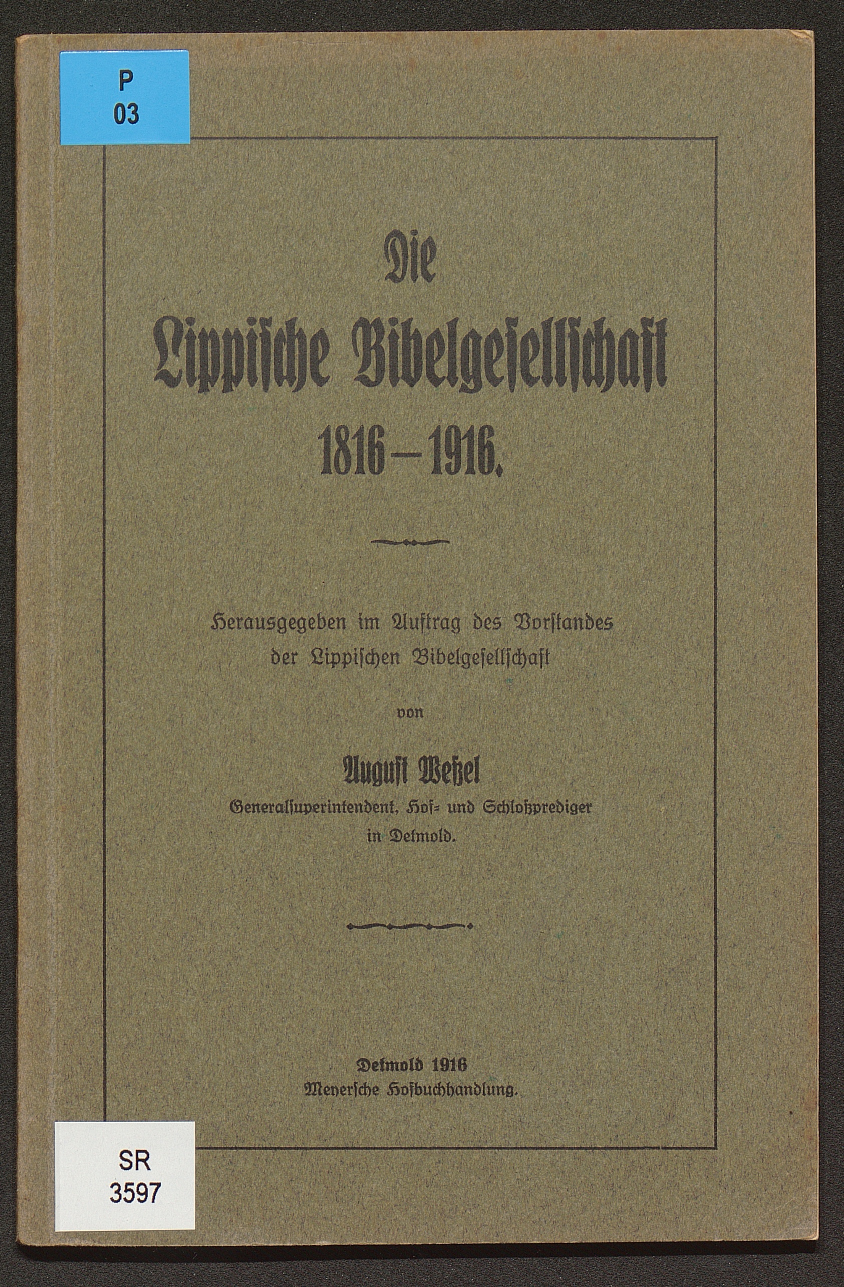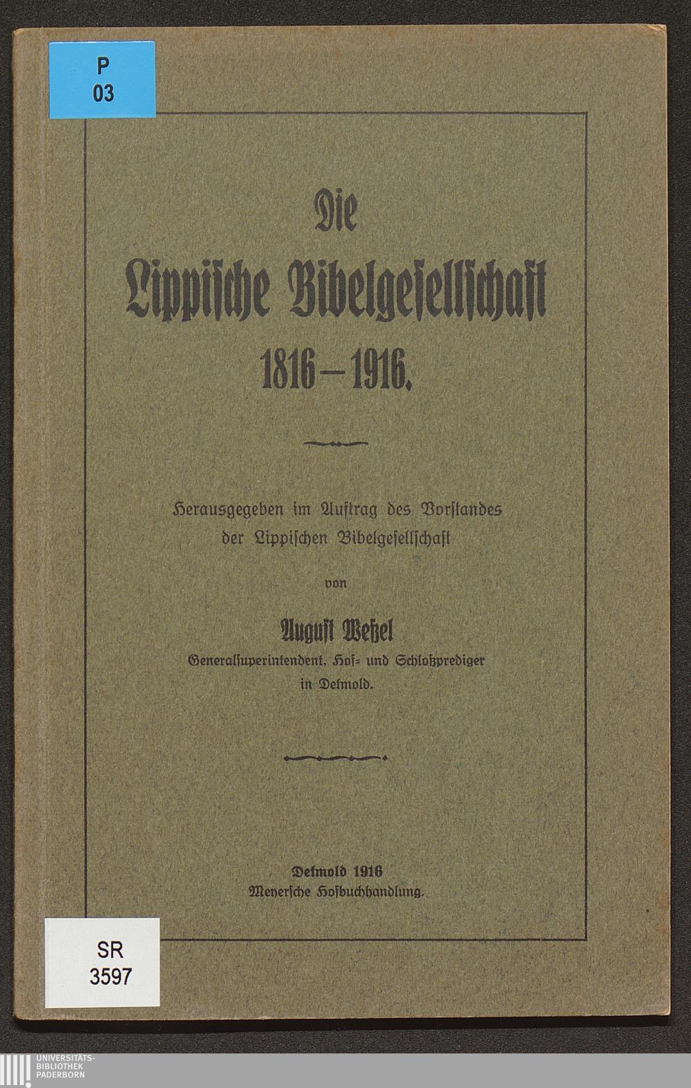 Die Lippische Bibelgesellschaft 1816 - 1916 / hrsg. ... von August Wessel
