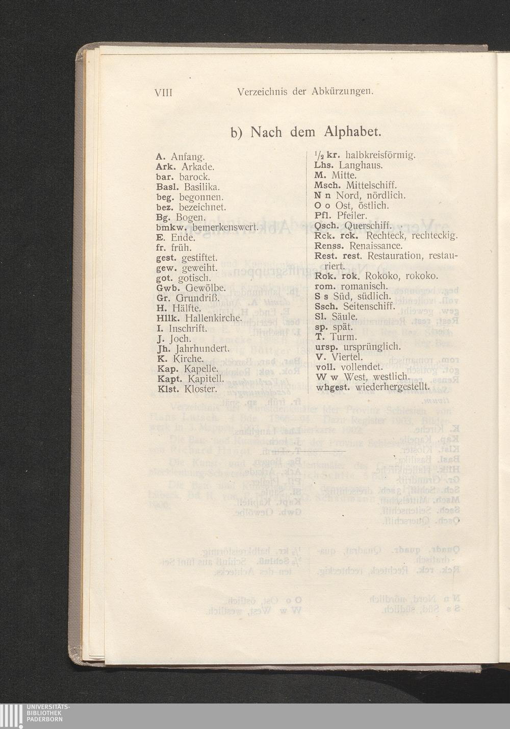 Verzeichnis der Abkürzungen.