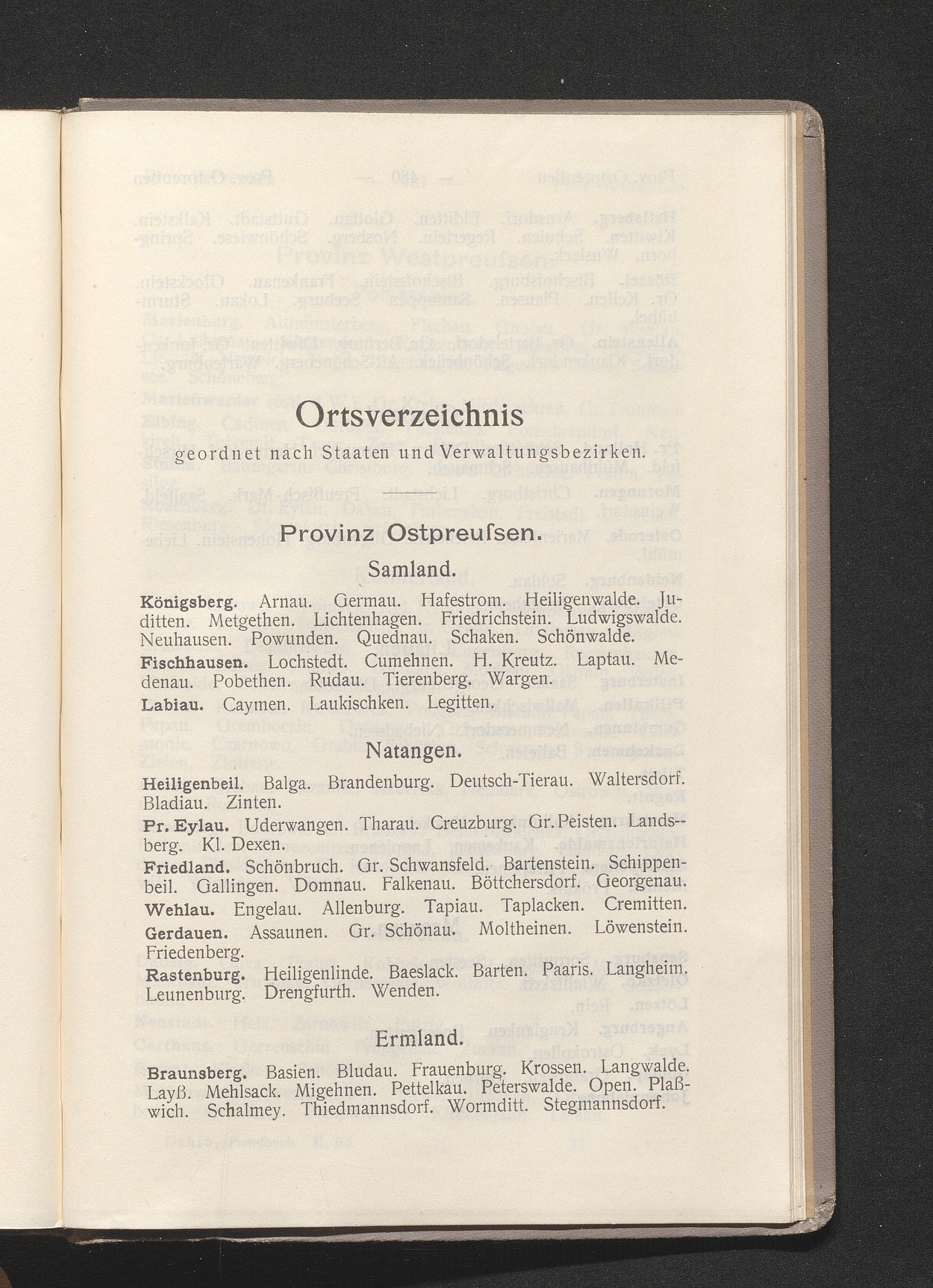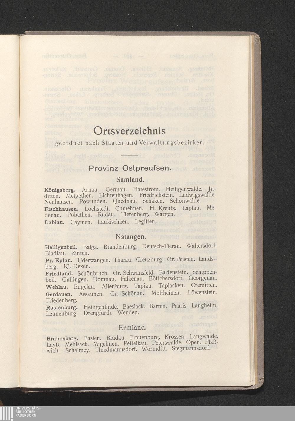 Ortsverzeichnis geordnet nach Staaten und Verwaltungsbezirken.
