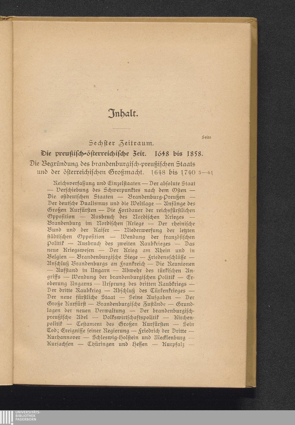 3 (1921) Der Werdegang des deutschen Volkes : historische Richtlinien für gebildete Leser / von Otto Kaemmel. Bearb. von Arnold Reimann. 3 / <<Die>> preussisch-österreichische Zeit 1648 - 1858