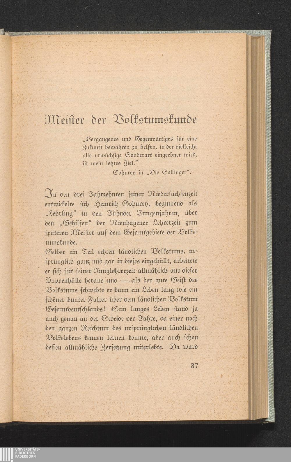 Meister der Volkstumskunde.