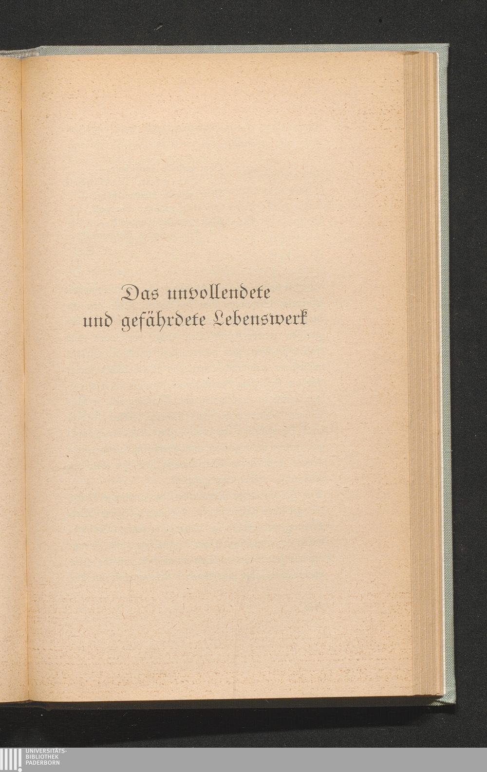 Das unvollendete und gefährdete Lebenswerk.
