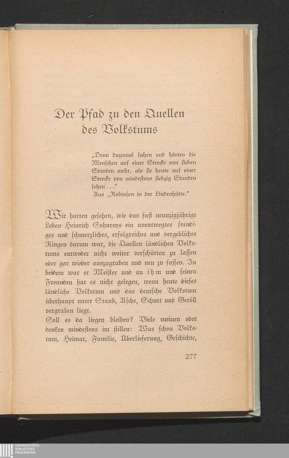 Der Pfad zu den Quellen des Volkstums.