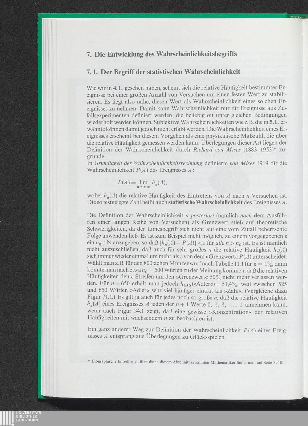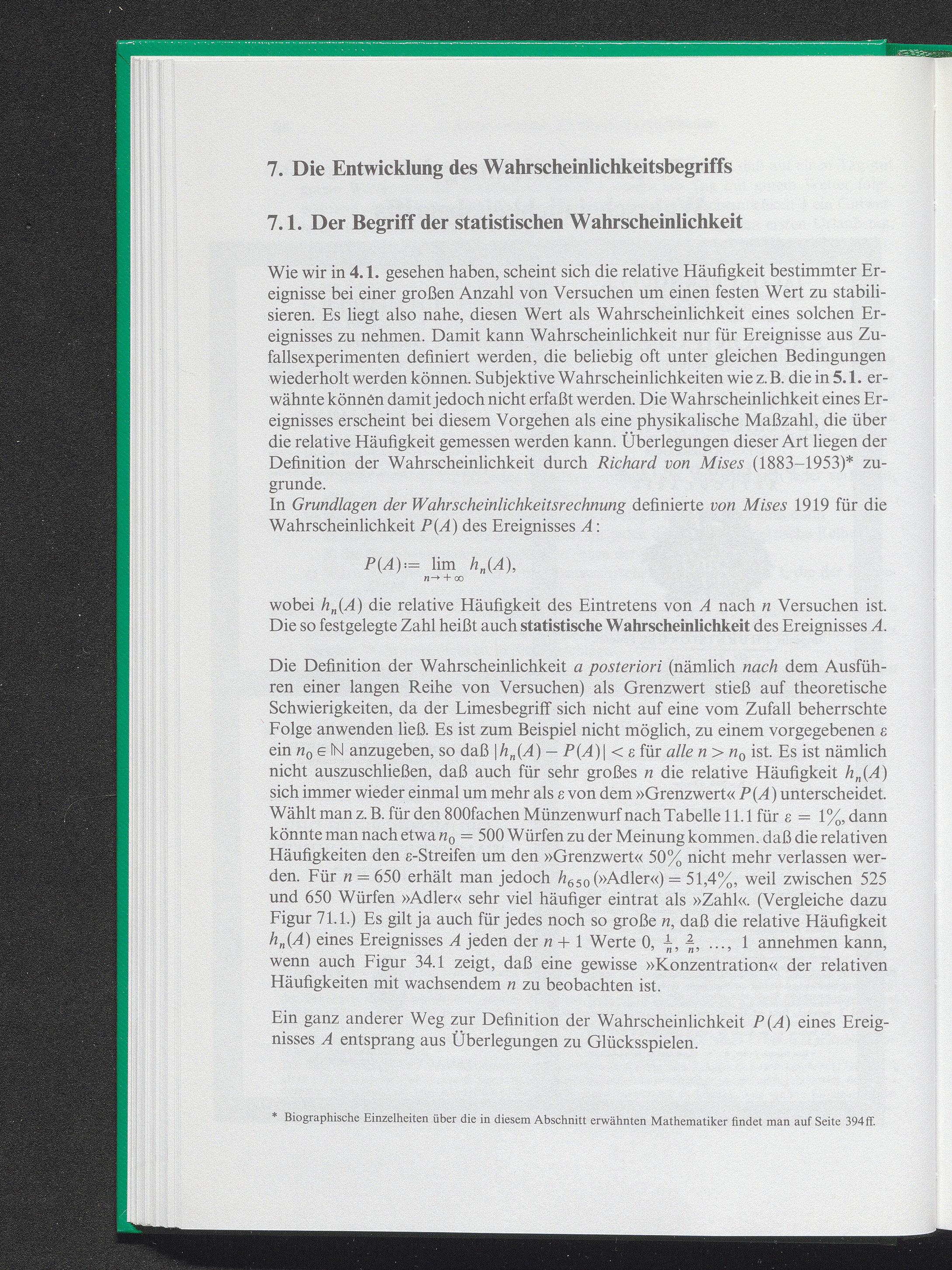 7. 1. Der Begriff der statischen Wahrscheinlichkeit