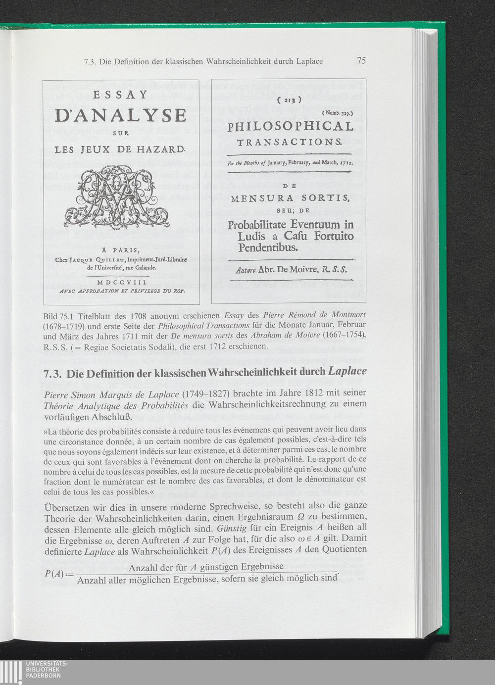 7. 3. Die Definition der klassischen Wahrscheinlichkeit durch Laplace
