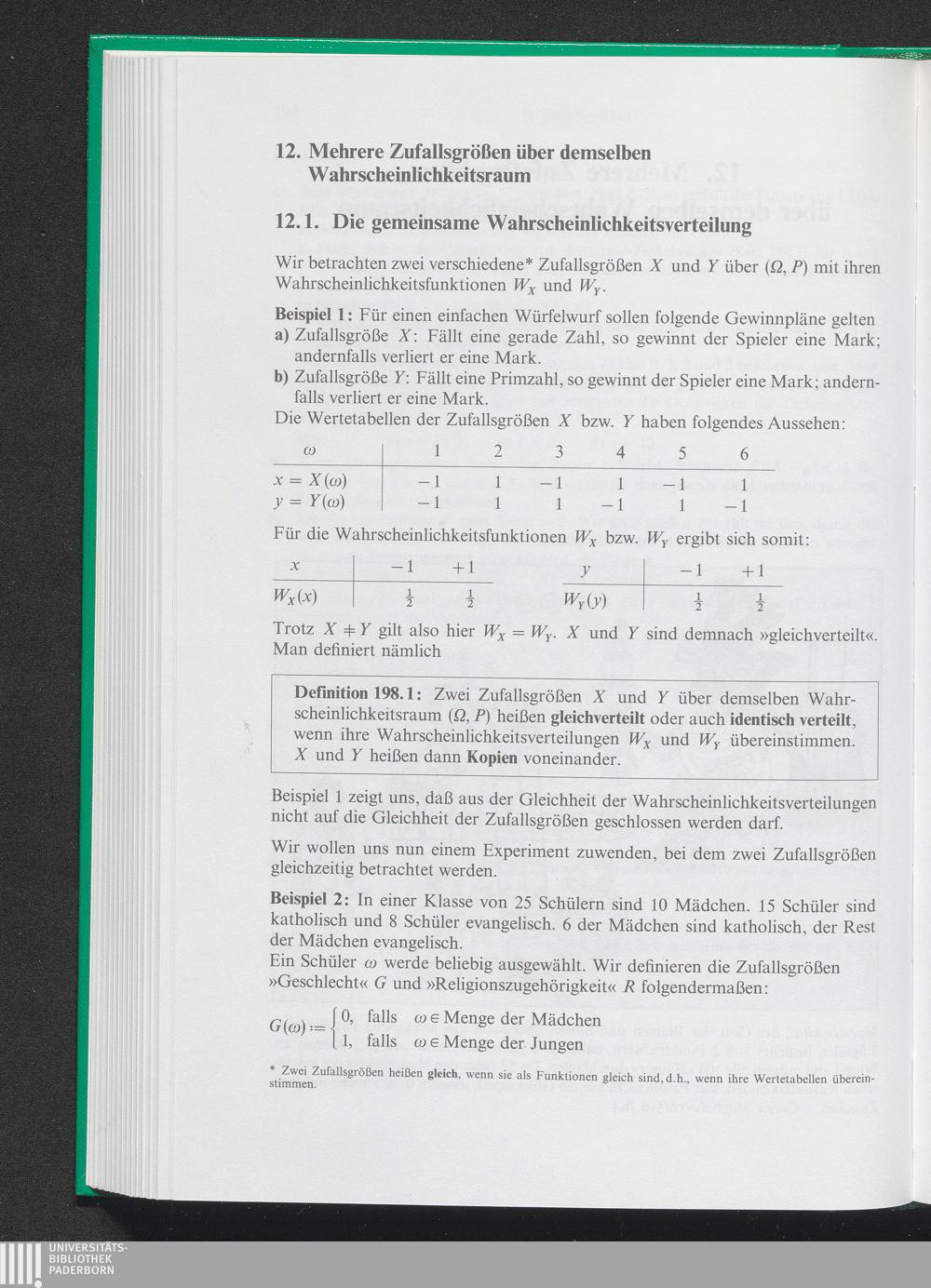 12. 1. Die gemeinsame Wahrscheinlichkeitsverteilung