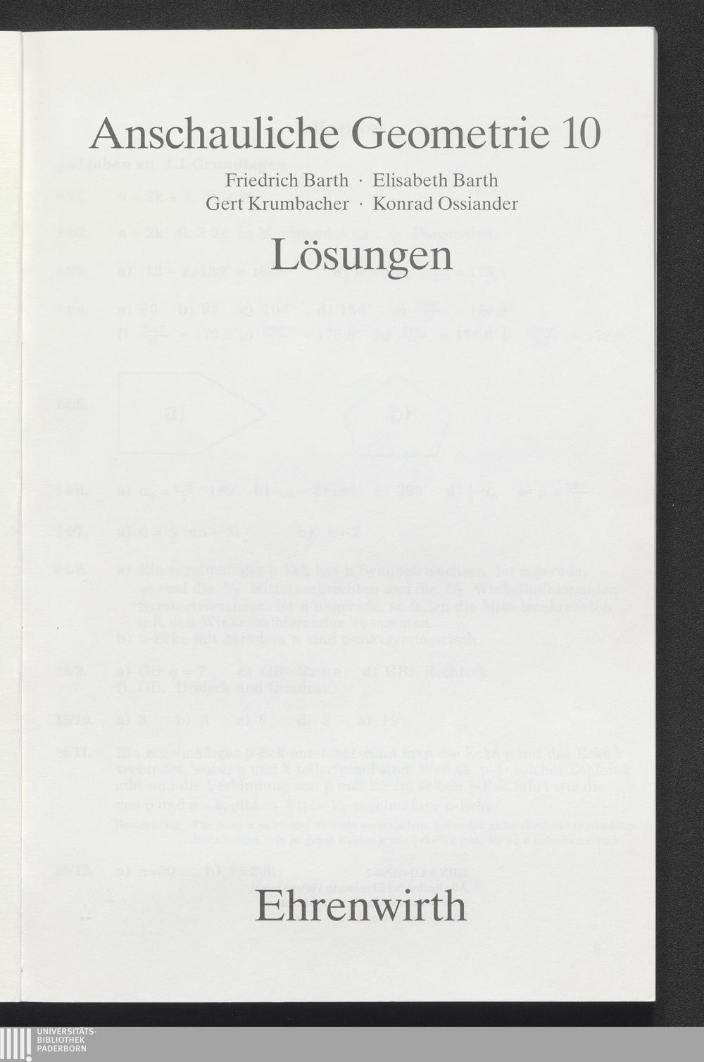 10, Lösungen (1996) Anschauliche Geometrie / Friedrich Barth .... 10, Lösungen.