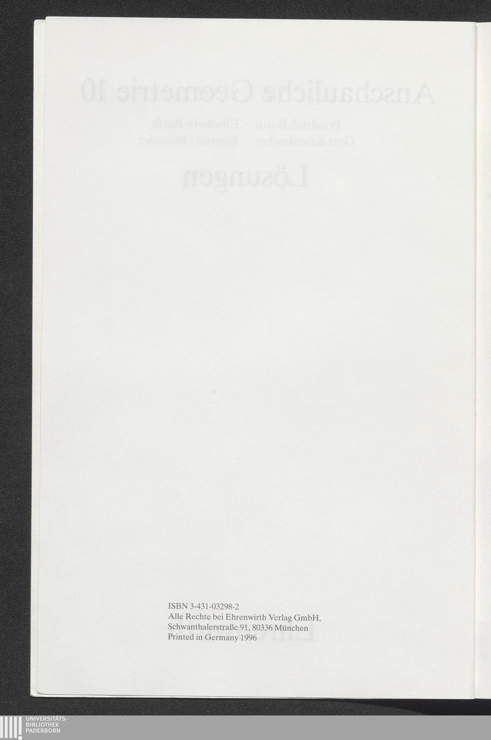 10, Lösungen (1996) Anschauliche Geometrie / Friedrich Barth .... 10, Lösungen.