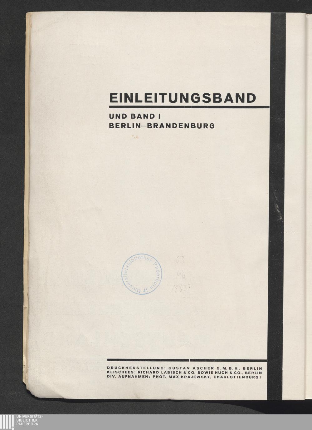 1. Einleitungsband und Band I, Berlin-Brandenburg