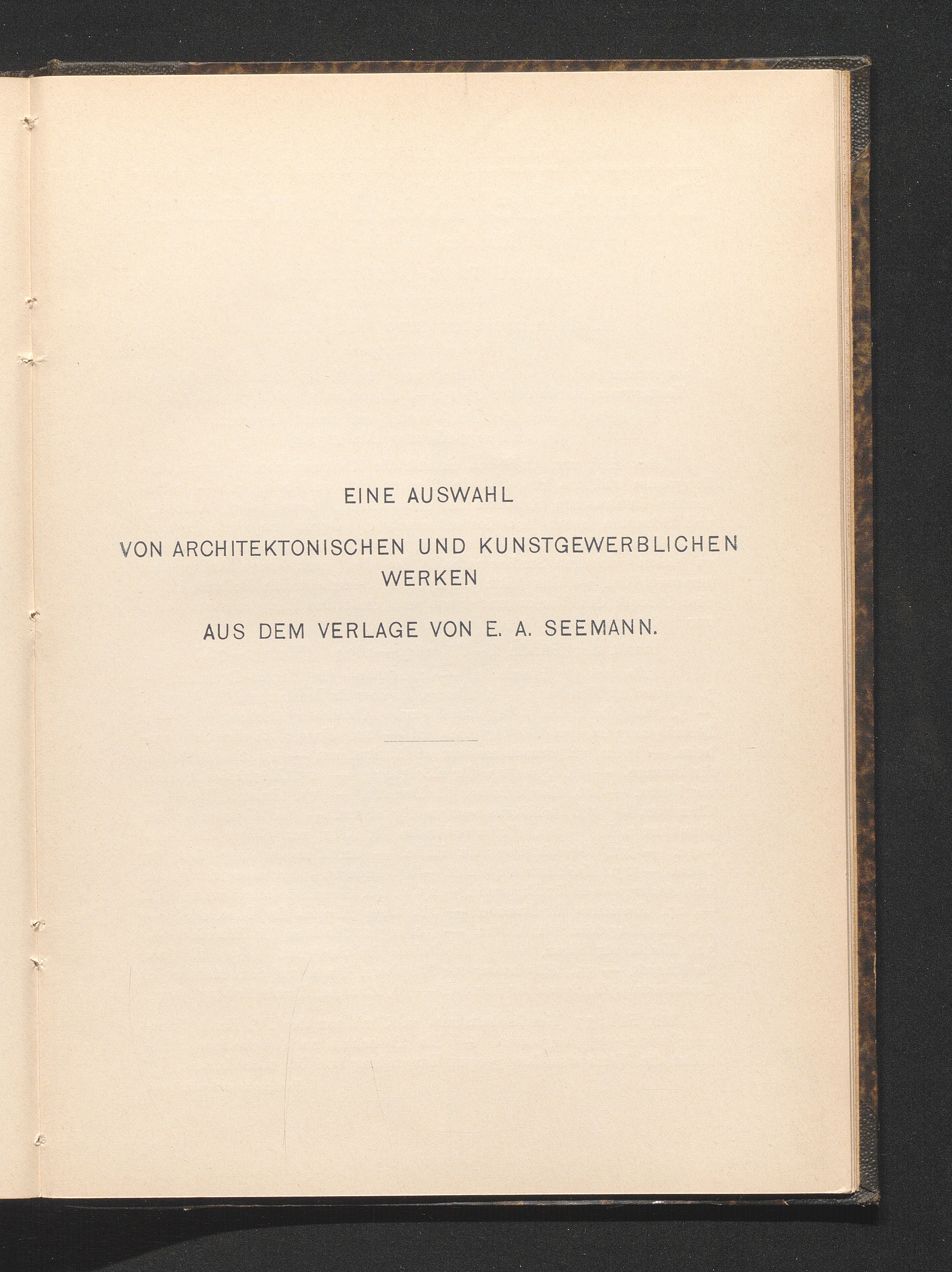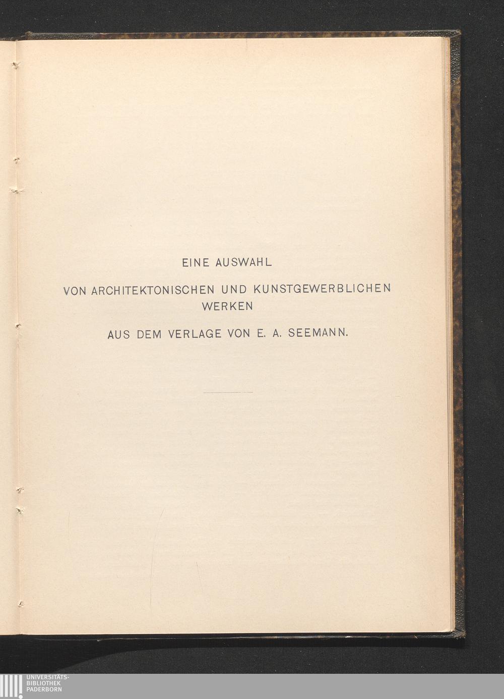 Eine Auswahl Von Architektonischen Und Kunstgewerblichen Werken Aus Dem Verlage Von E. A. Seemann.