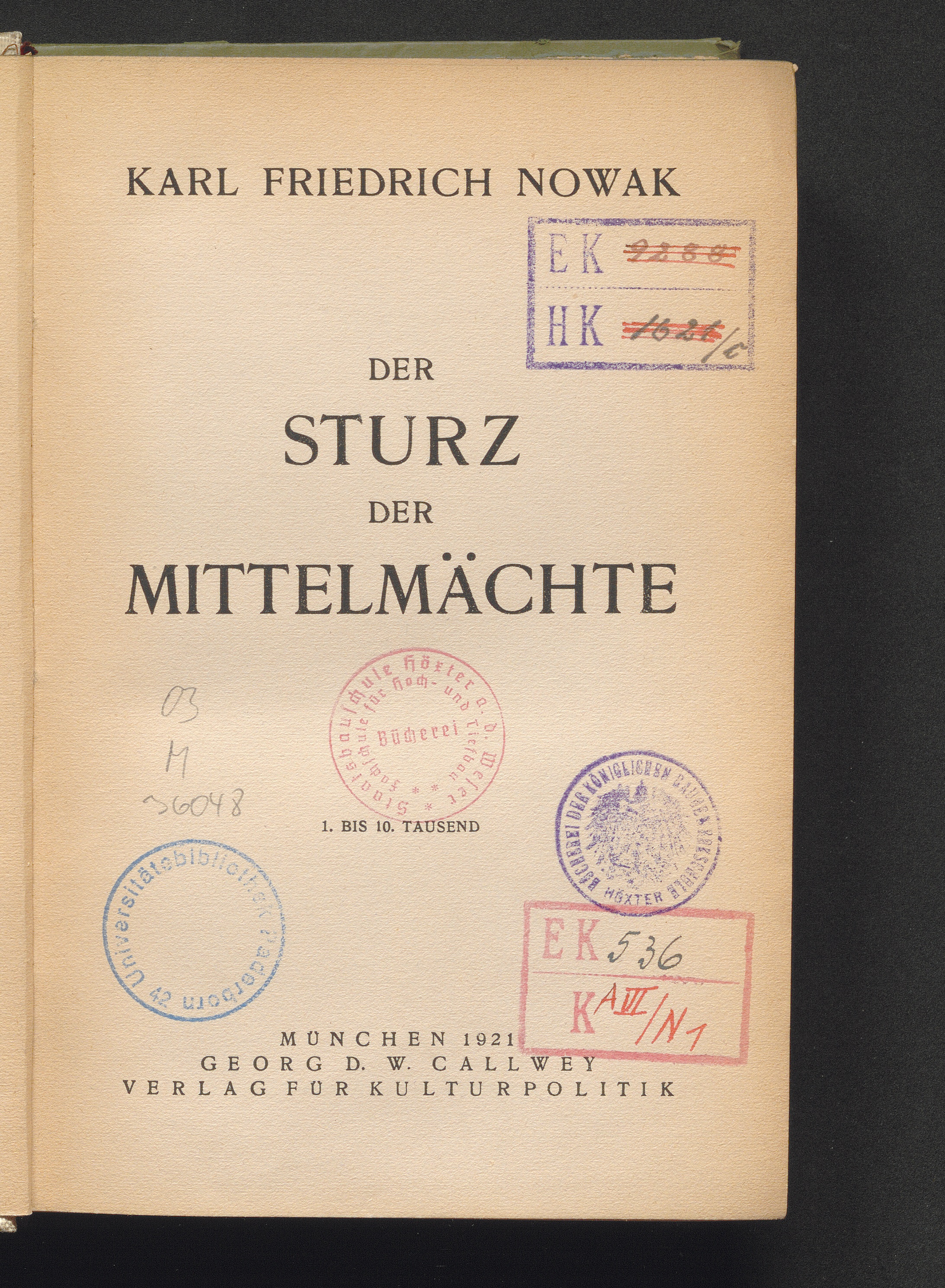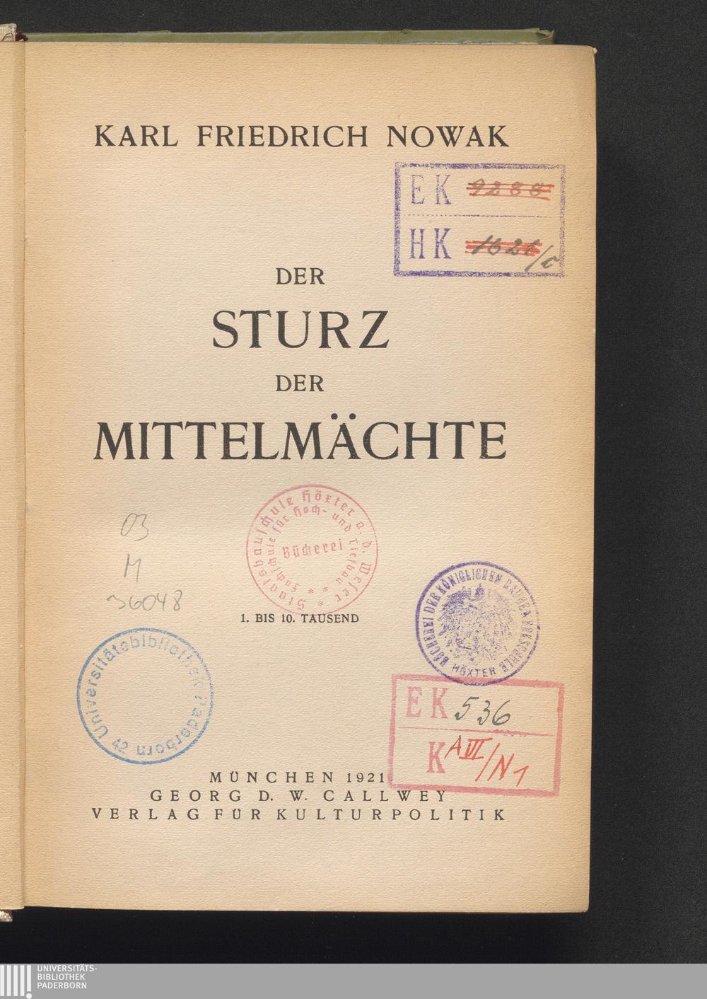 Der Sturz der Mittelmächte / Karl Friedrich Nowak