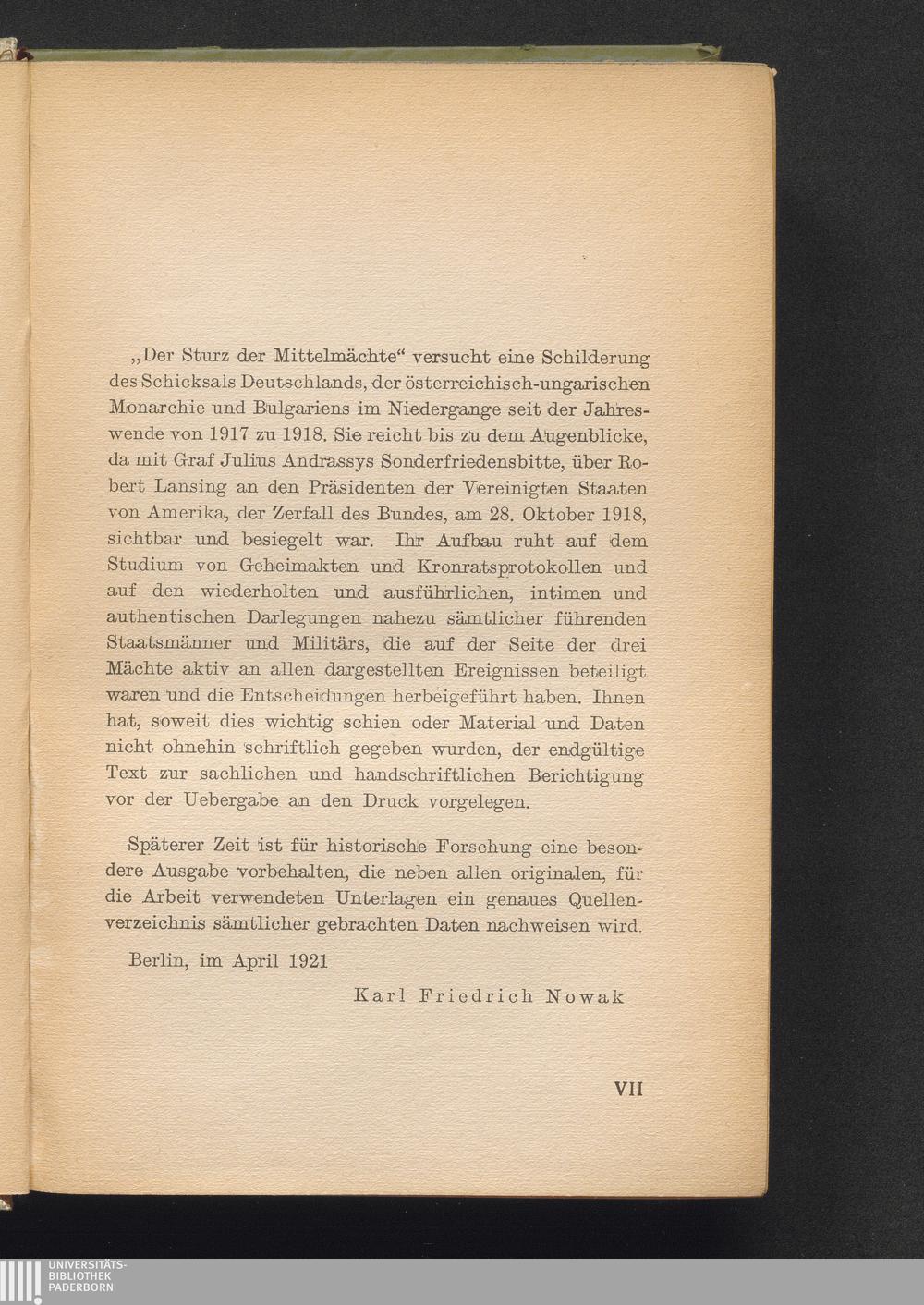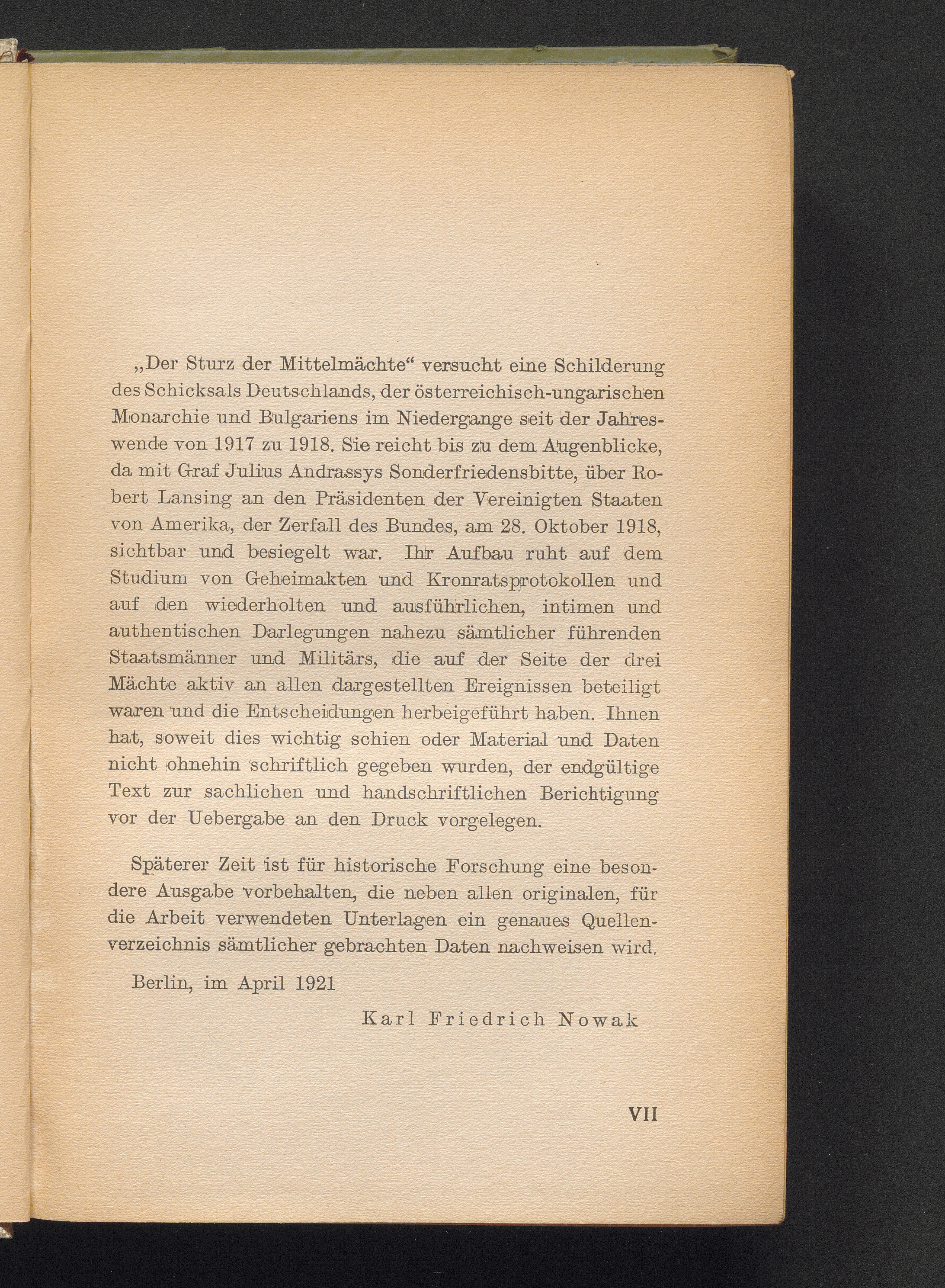Der Sturz der Mittelmächte / Karl Friedrich Nowak
