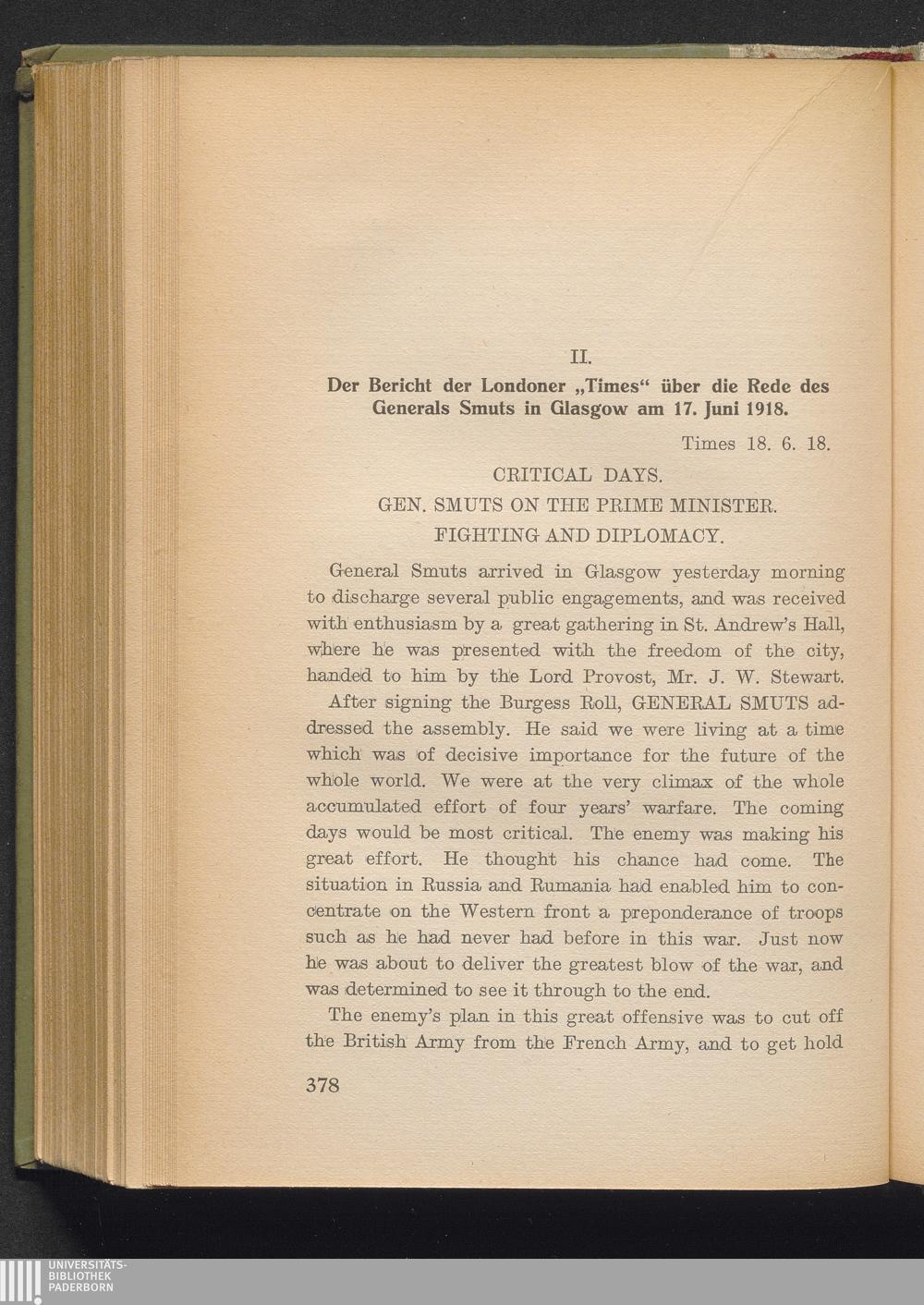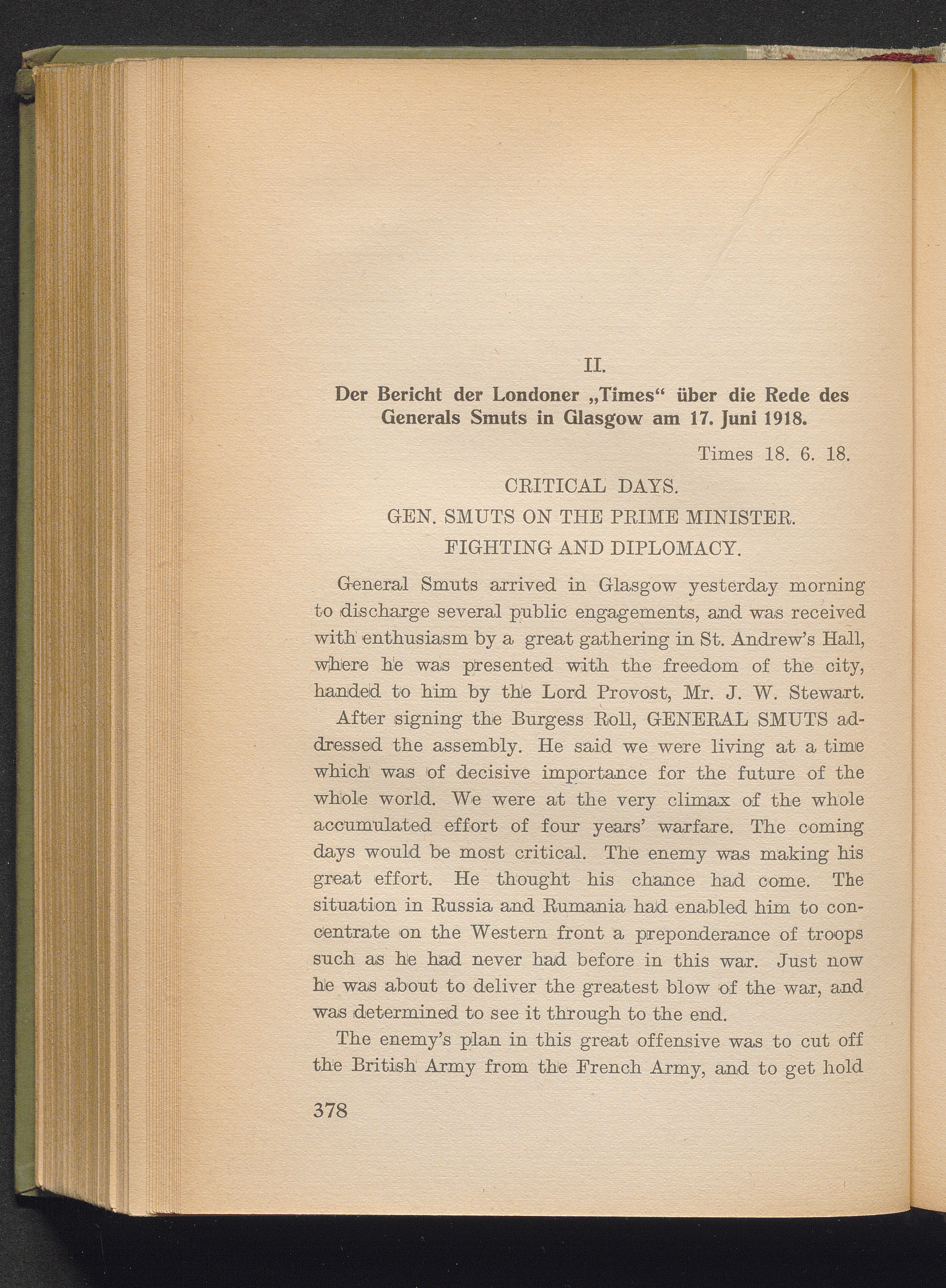 II. Der Bericht der Londer "Times" über die Rede des General Smuts in Glasgow am[...]