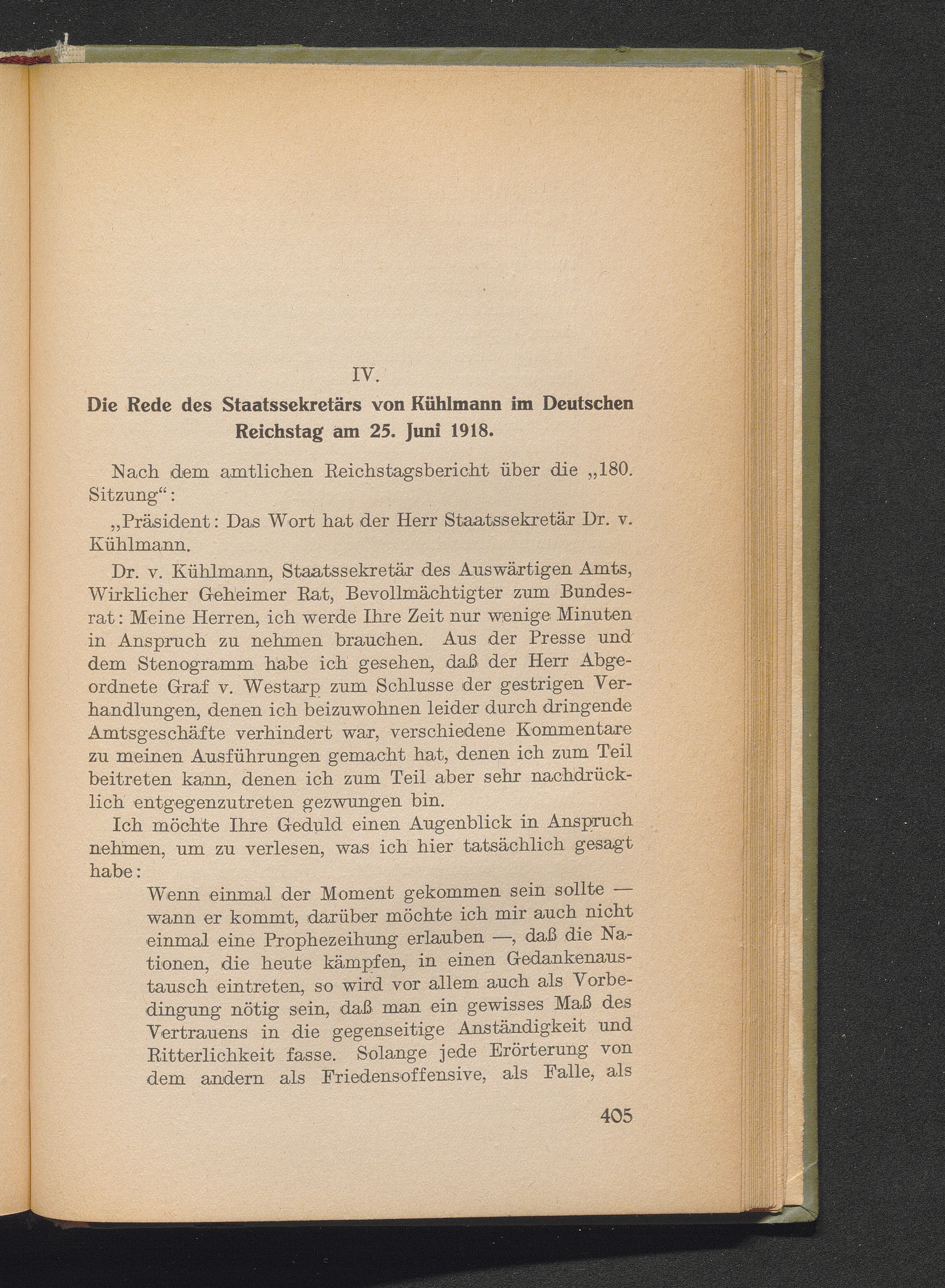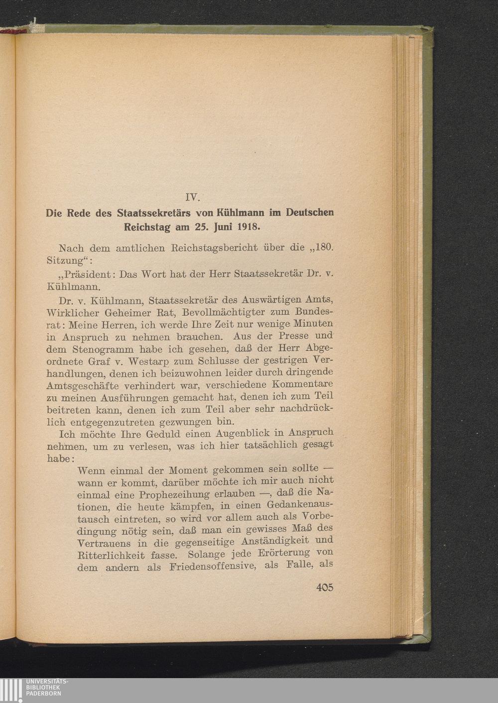 IV. Die Rede des Staatssekretärs von Kühlmann im Deutschen Reichstag am 25. Juni[...]