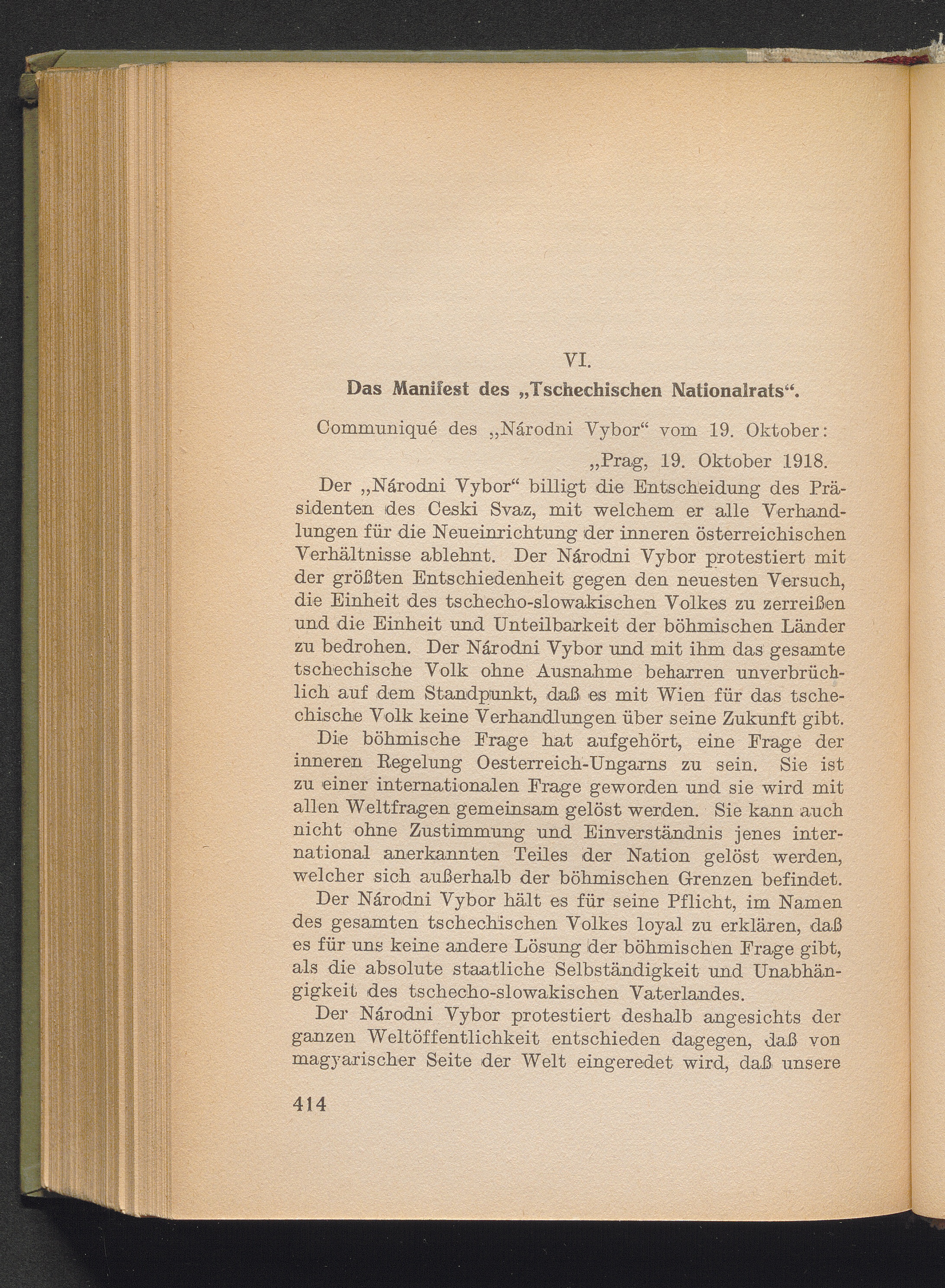 VI. Das Manifest des "Tschechischen Nationalrats"