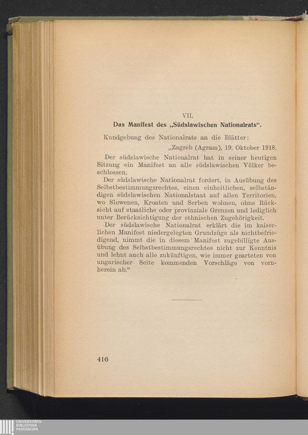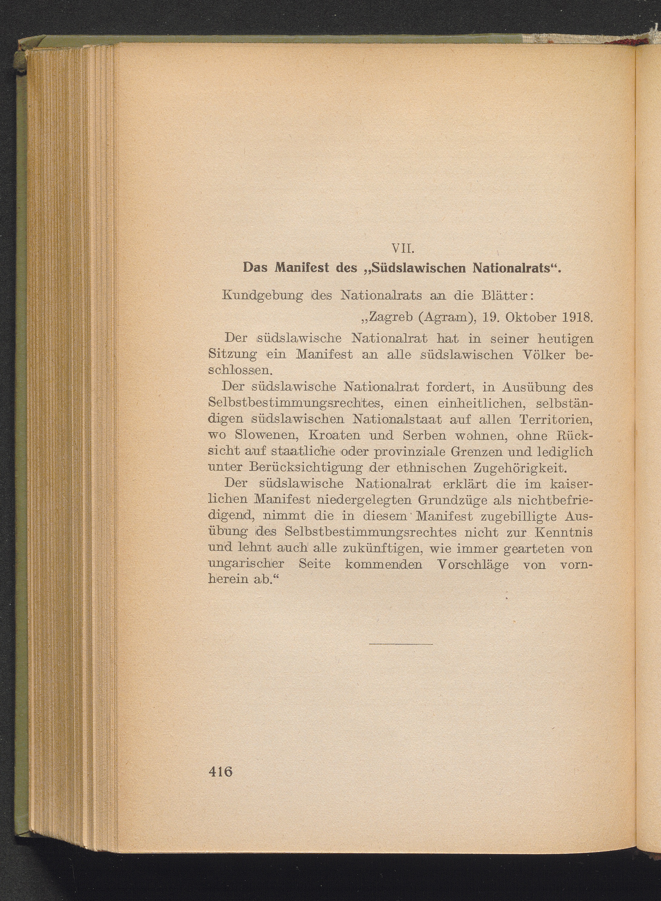 VII. Das Manifest des "Südslawischen Nationalrats"