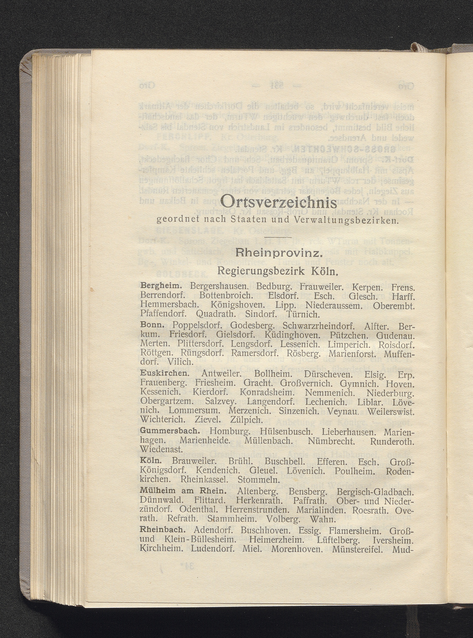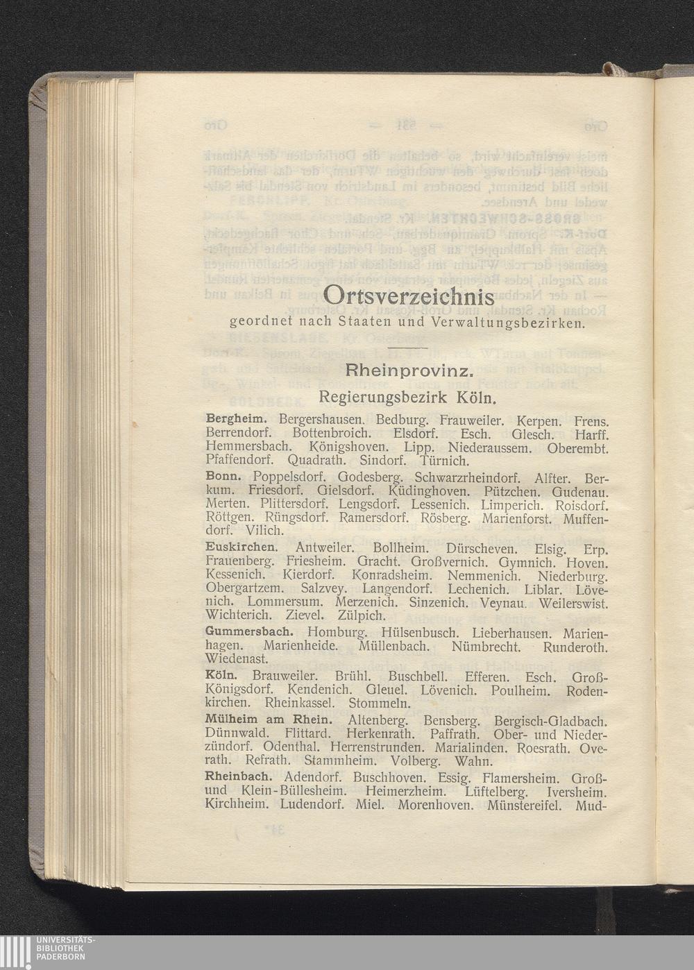 Ortsverzeichnis geordnet nach Staaten und Verwaltungsbezirken.