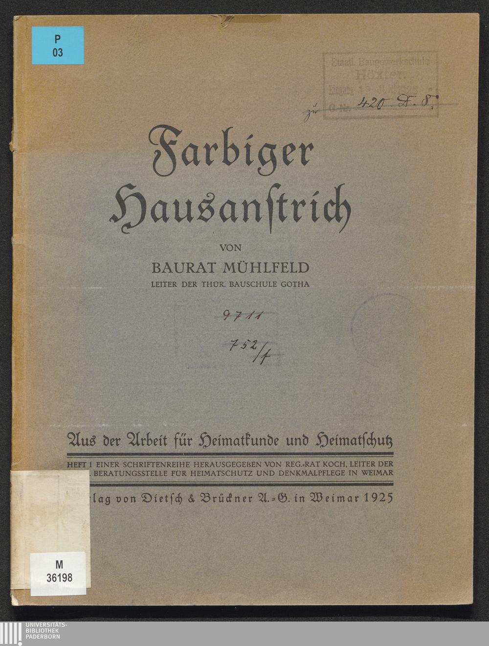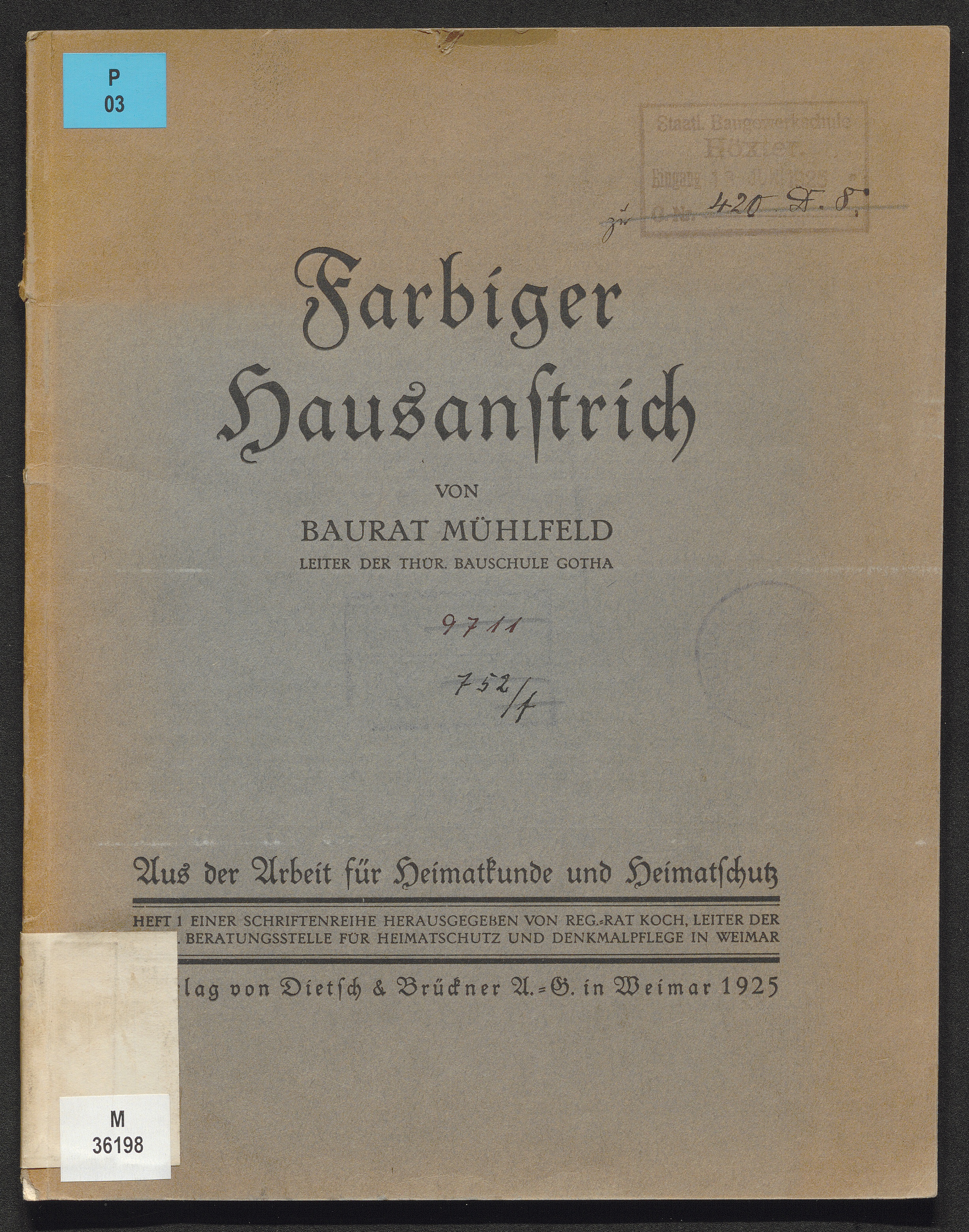 Farbiger Hausanstrich / von Baurat Mühlfeld, Leiter der Thür. Bauschule Gotha