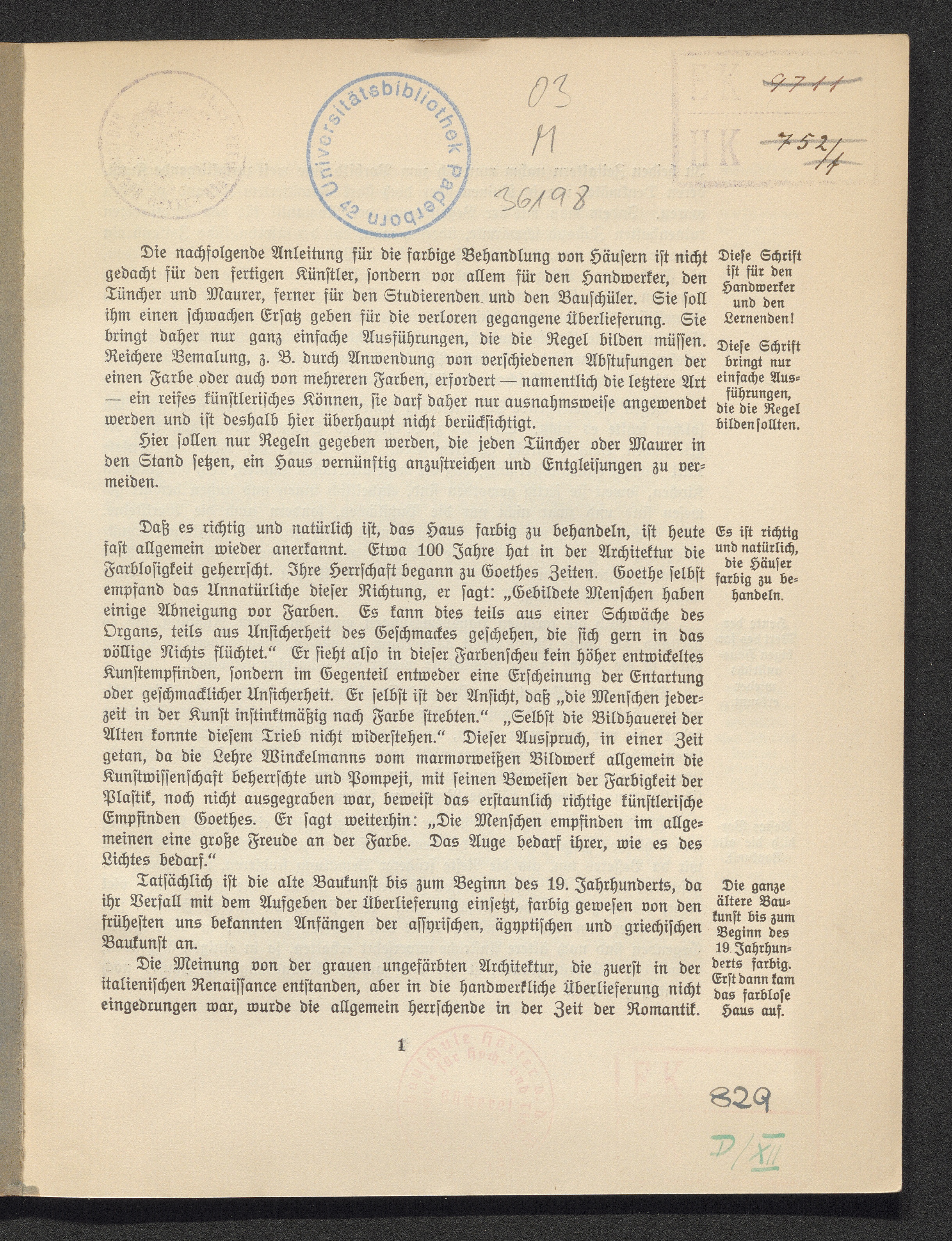 Farbiger Hausanstrich / von Baurat Mühlfeld, Leiter der Thür. Bauschule Gotha