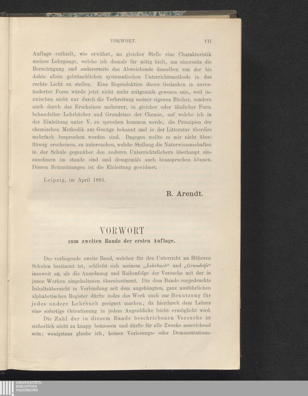 Technik der Experimentalchemie : Anleitung zur Ausführung chemischer Experimente für Lehrer und Studierende, sowie zum Selbststudium ; mit 878 in den Text eingedruckten Holzschnitten und einer Tafel / von Rudolf Arendt