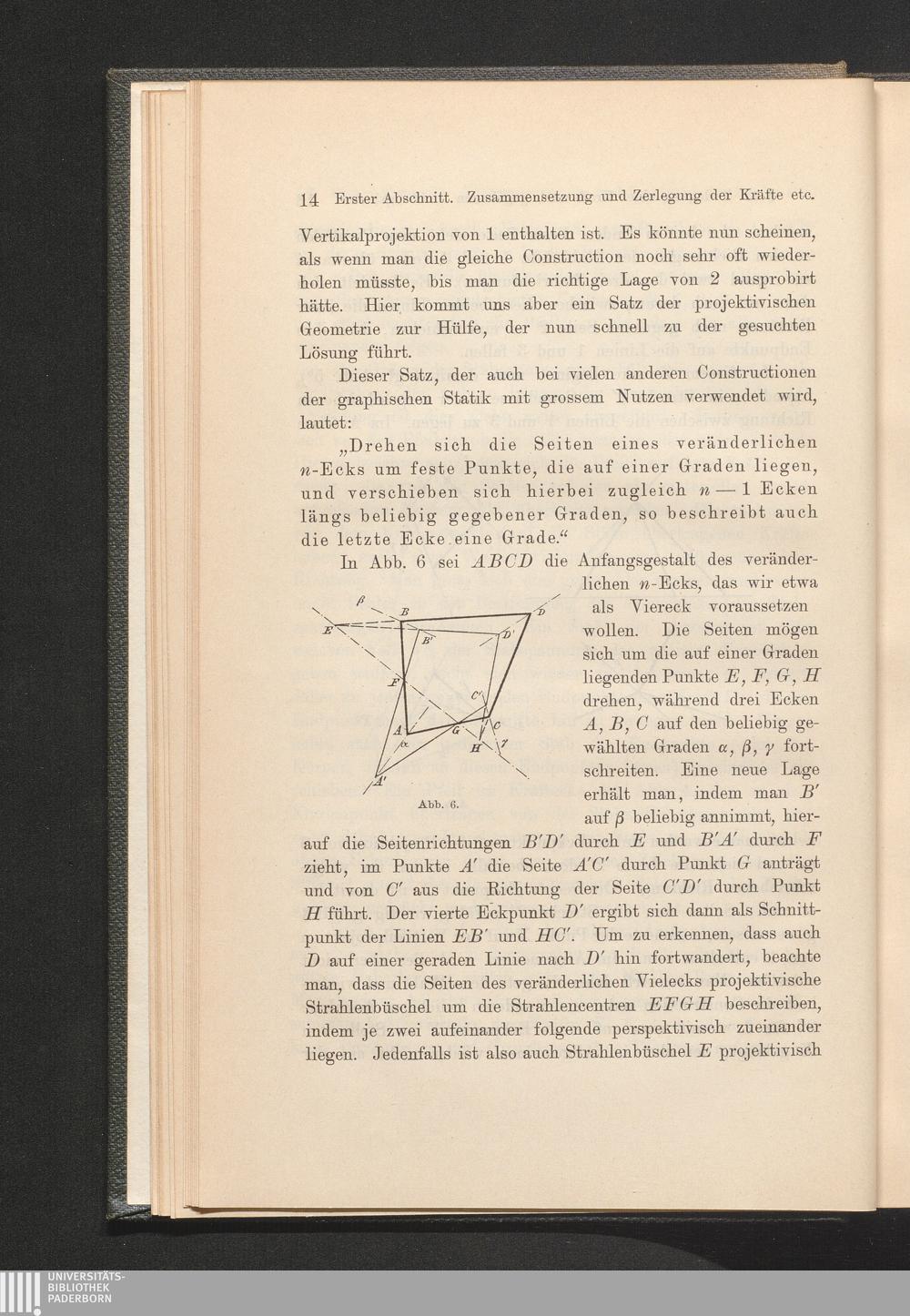 Erster Abschnitt. Zusammensetzung und Zerlegung der Kräfte am materiellen Punkte[...]