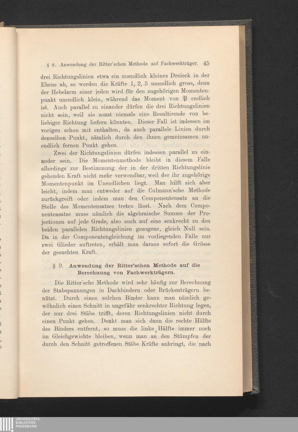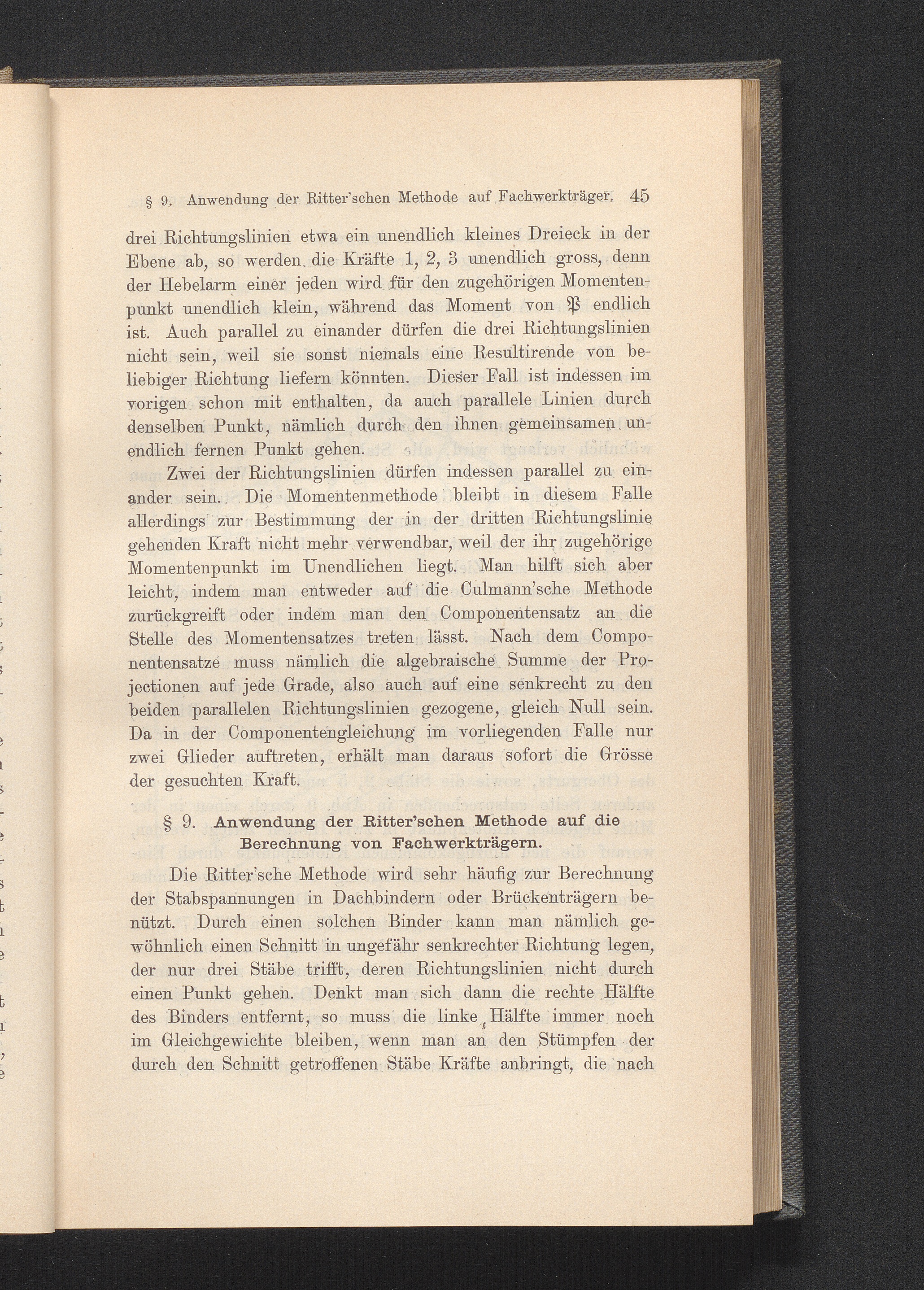 §. 9. Anwendung der Ritter'schen Methode auf die Berechnung von Fachwerkträgern