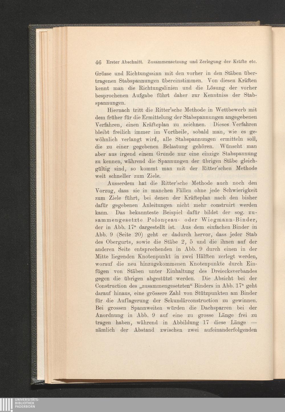 §. 9. Anwendung der Ritter'schen Methode auf die Berechnung von Fachwerkträgern
