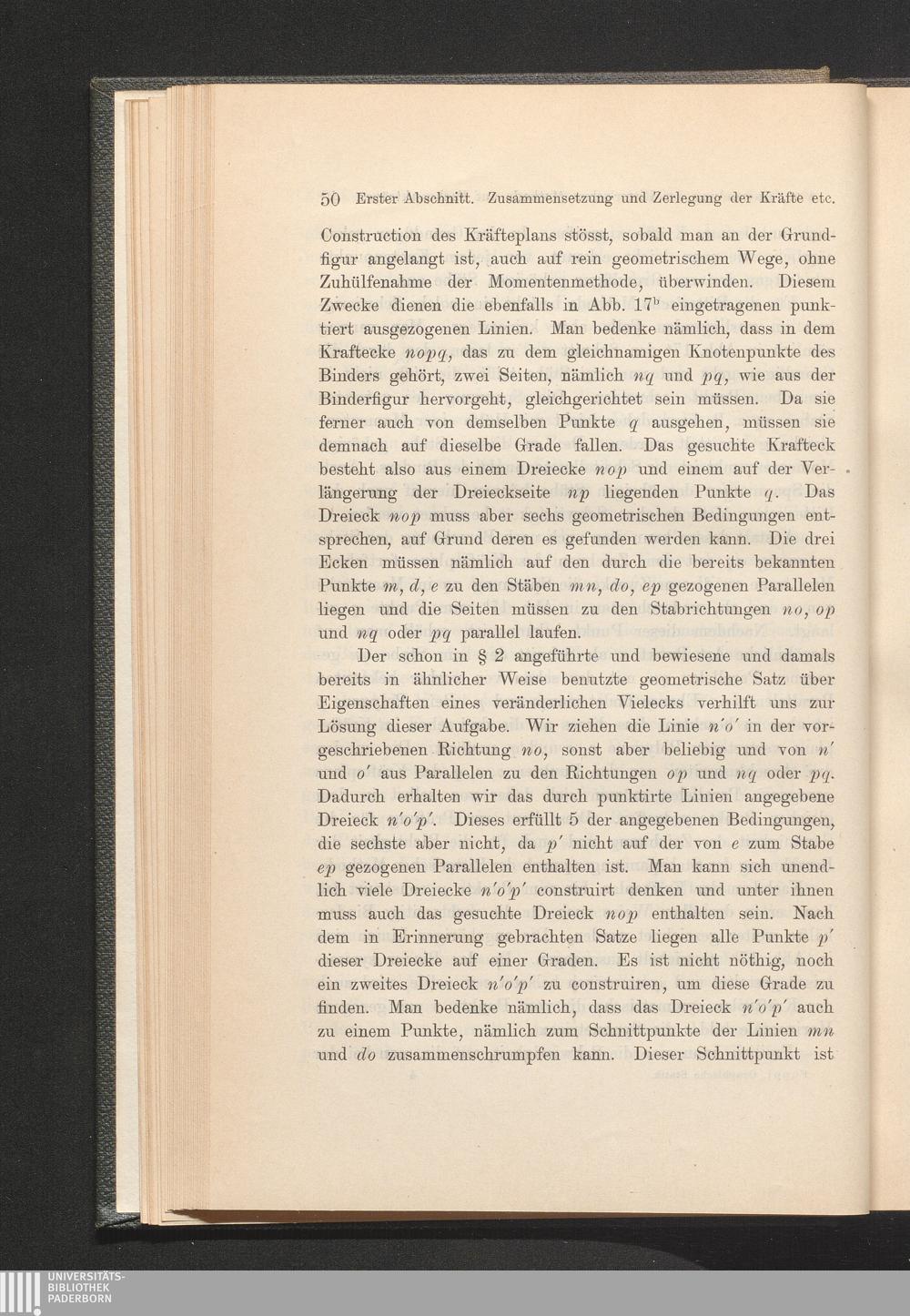 Erster Abschnitt. Zusammensetzung und Zerlegung der Kräfte am materiellen Punkte[...]