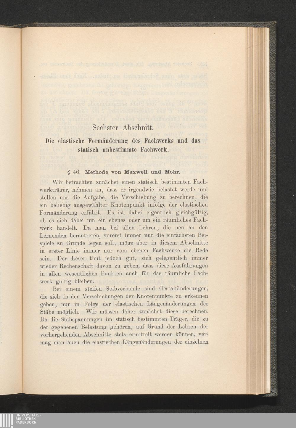 Sechster Abschnitt. Die elastische Formänderung des Fachwerks und statisch unbestimmte[...]