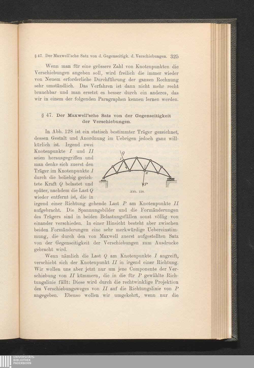 §. 47. Der Maxwell'sche Satz von der Gegenseitigkeit der Verschiebungen