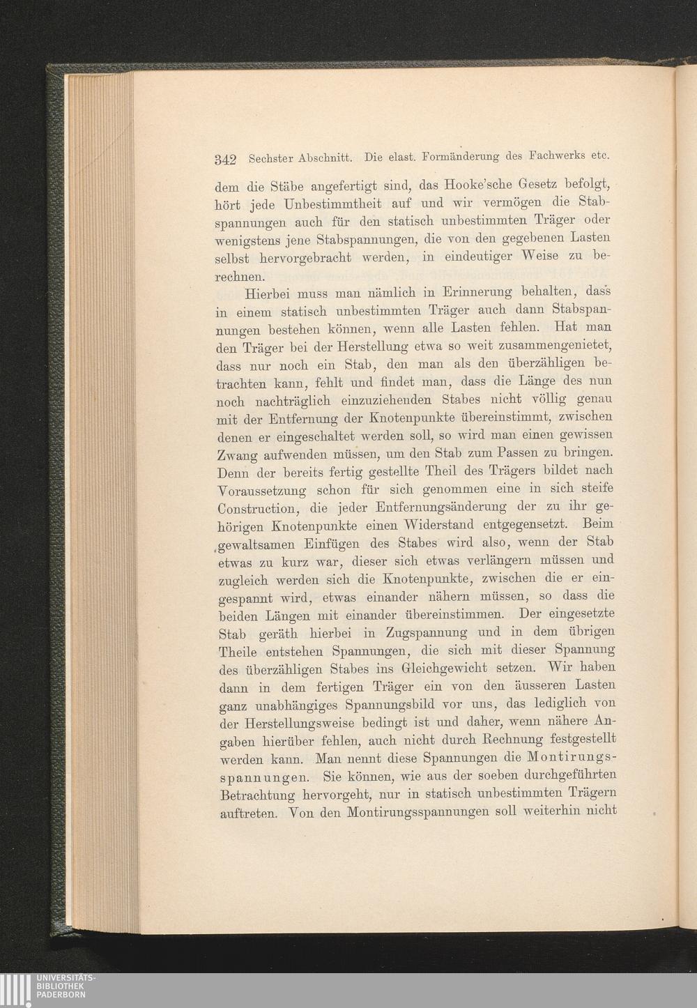 Sechster Abschnitt. Die elastische Formänderung des Fachwerks und statisch unbestimmte[...]
