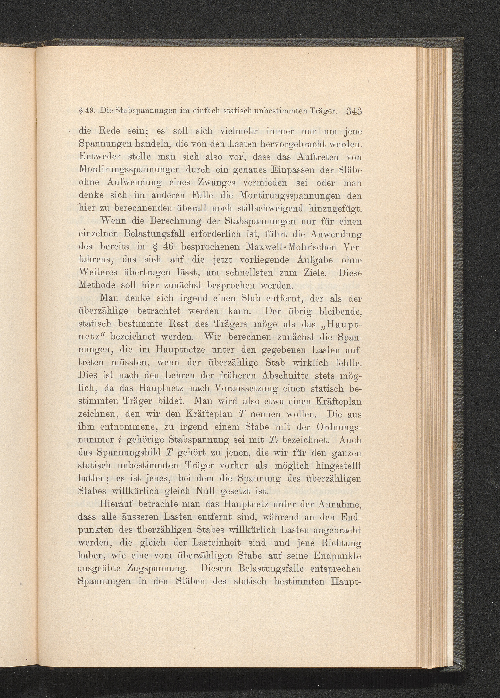 §. 49. Die Stabspannungen im einfach statisch unbestimmten Träger