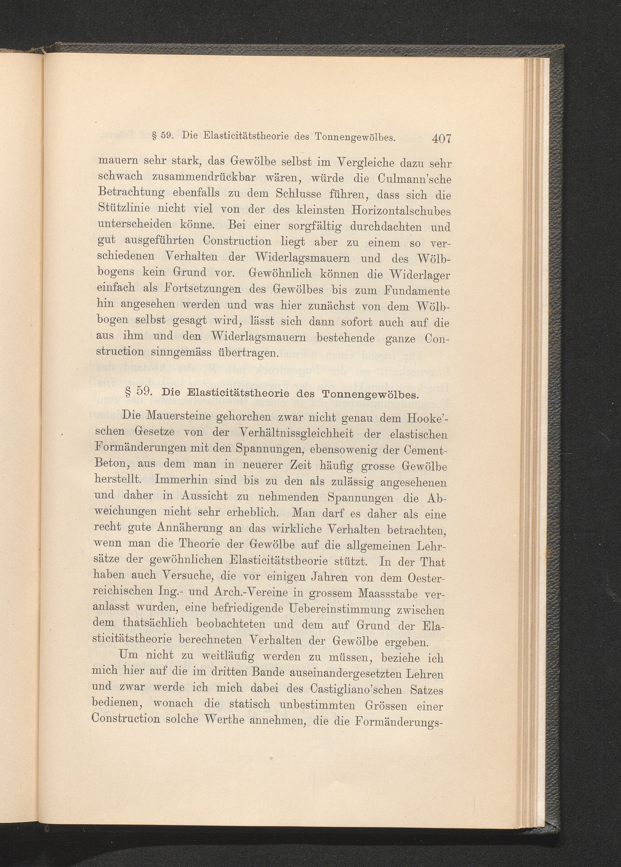 §. 59. Die Elasticitätstheorie des Tonnengewölbes