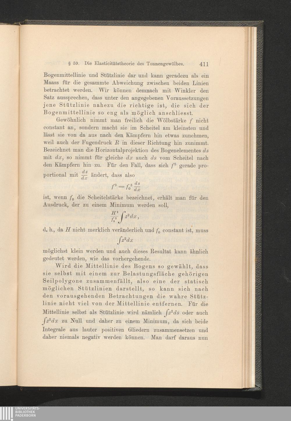 §. 59. Die Elasticitätstheorie des Tonnengewölbes