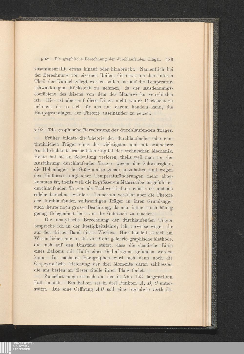§. 62. Die graphische Berechnung der durchlaufenden Träger