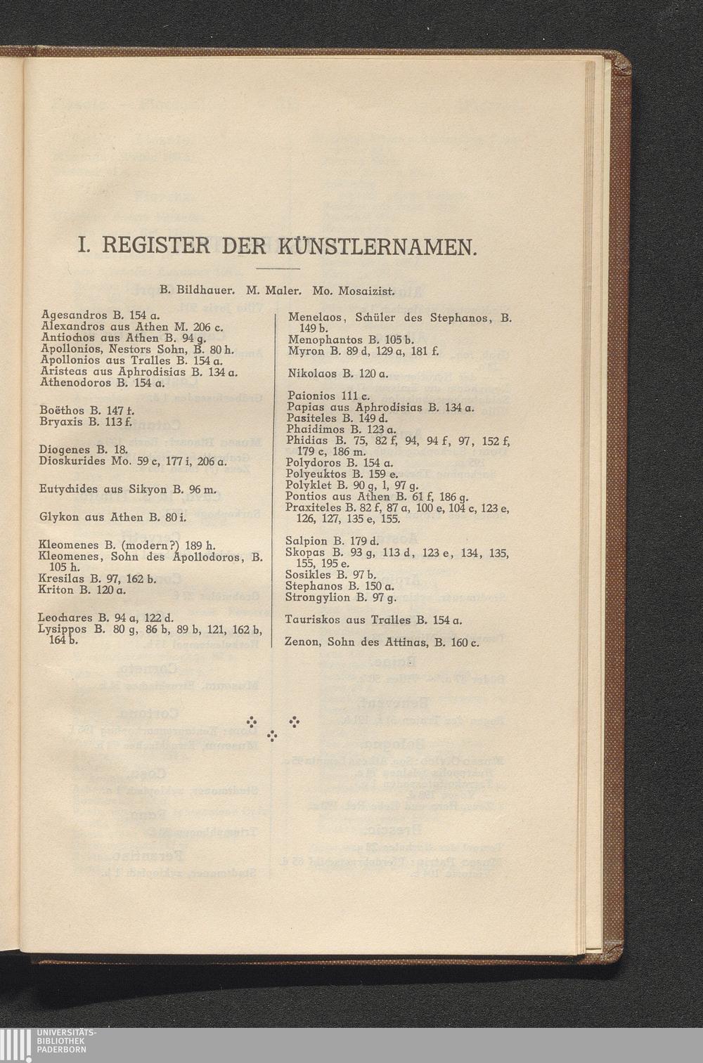 I. Register Der Künstlernamen.