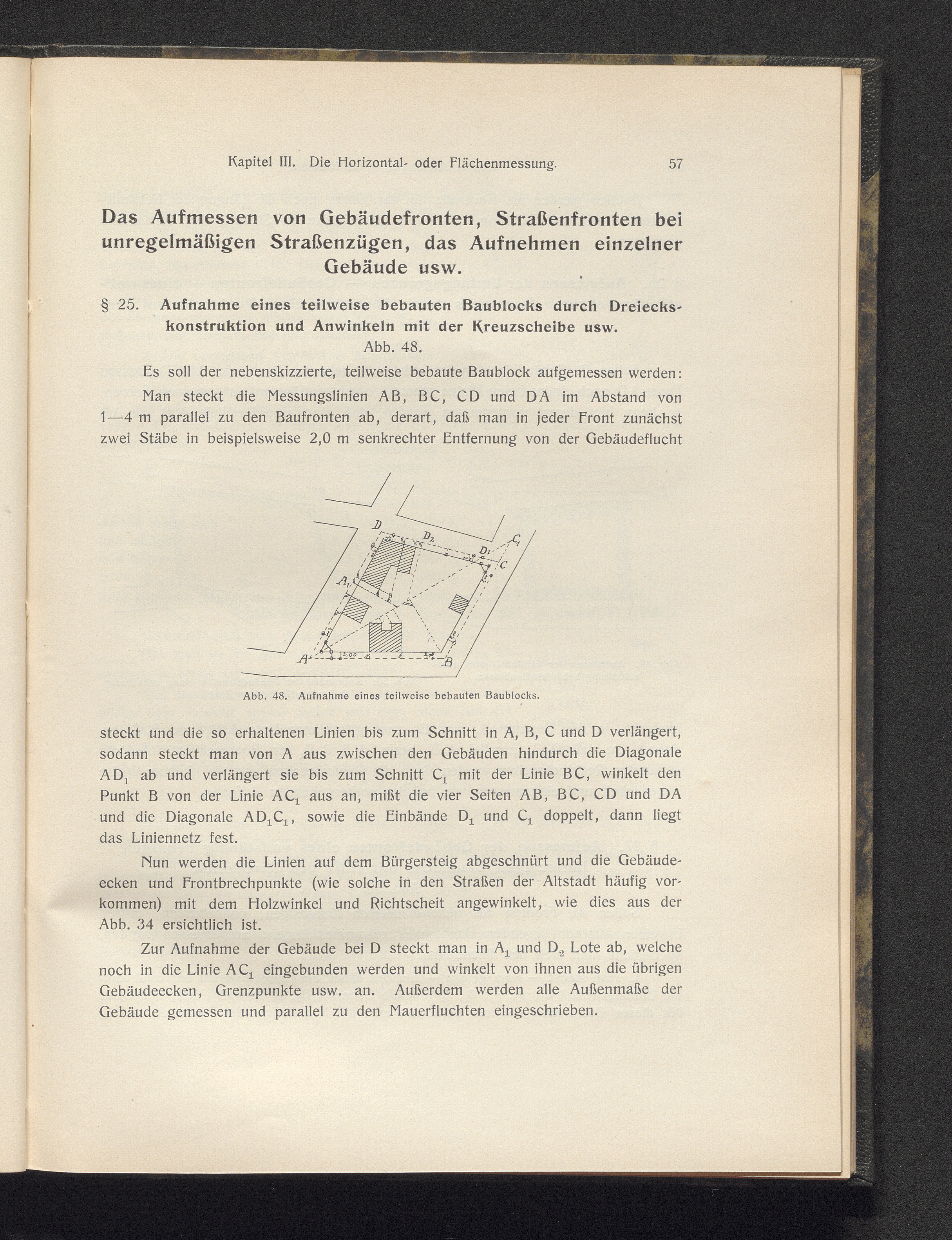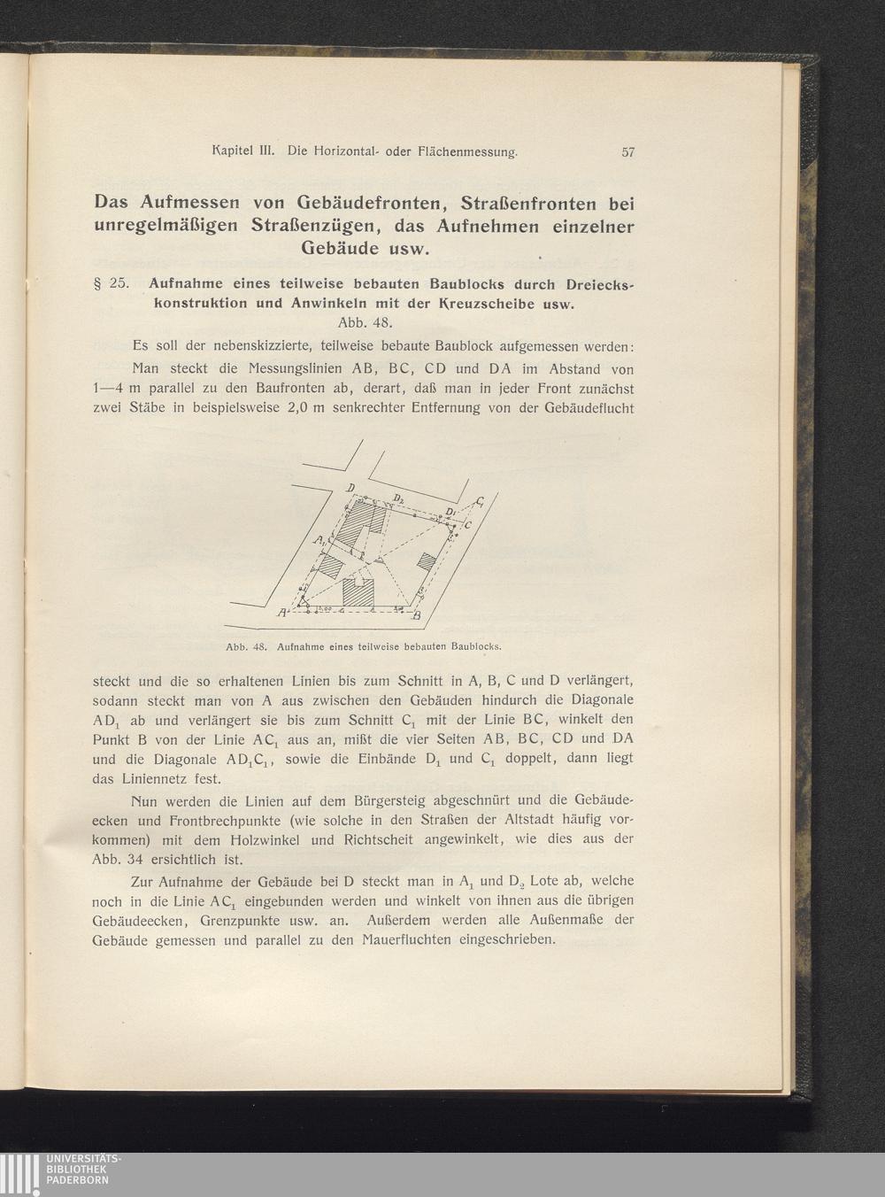 1 (1910) Das Aufnehmen von Architekturen : eine allgemeine Übersicht über das Aufnehmen von Architekturen und die Hilfsmittel, im Zusammenhang mit der Entwickelung und Darstellung der Architektur im Bilde der Geschichte / von Karl Staatsmann. 1 / Das Vermessen und Darstellen von Architekturen