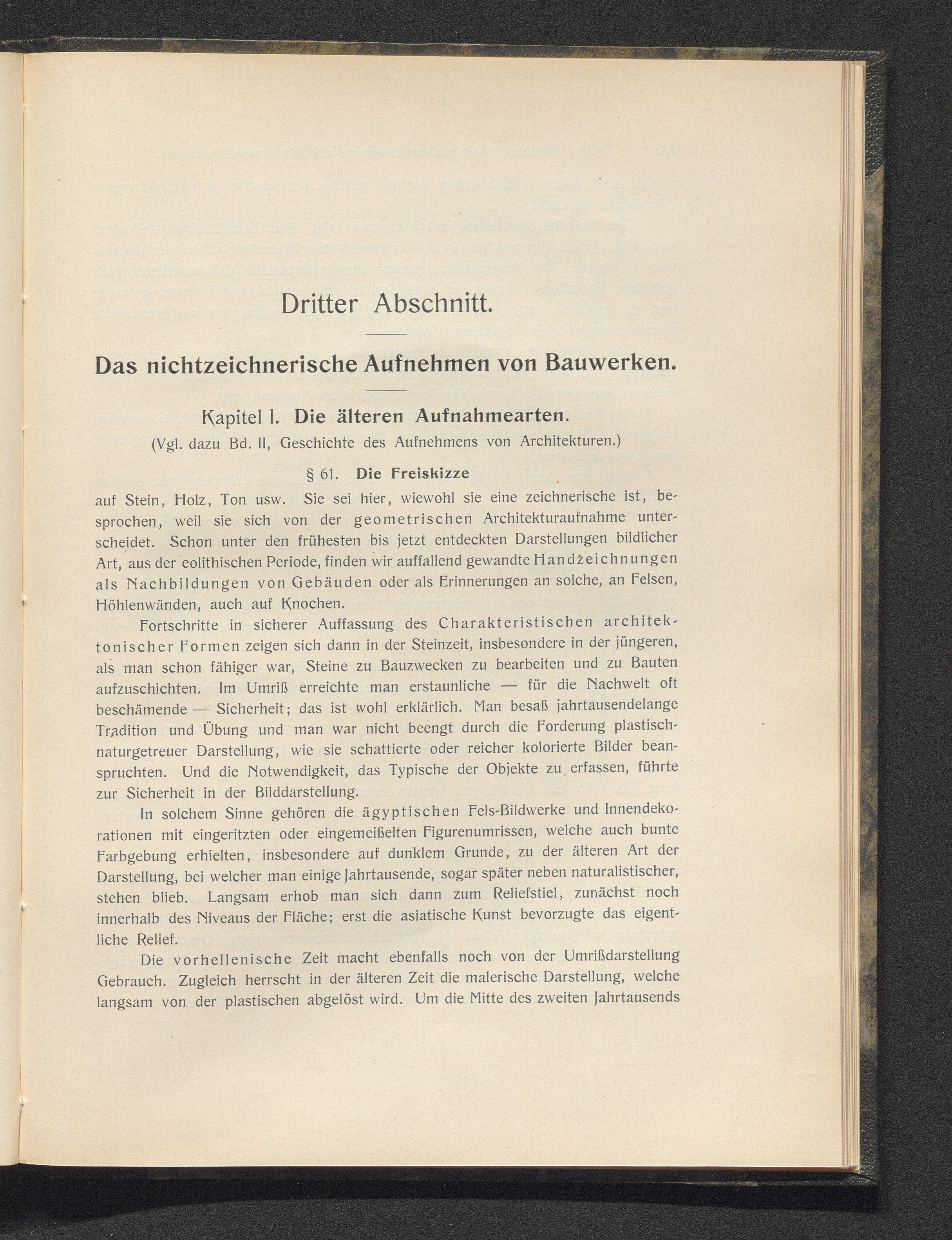 1 (1910) Das Aufnehmen von Architekturen : eine allgemeine Übersicht über das Aufnehmen von Architekturen und die Hilfsmittel, im Zusammenhang mit der Entwickelung und Darstellung der Architektur im Bilde der Geschichte / von Karl Staatsmann. 1 / Das Vermessen und Darstellen von Architekturen